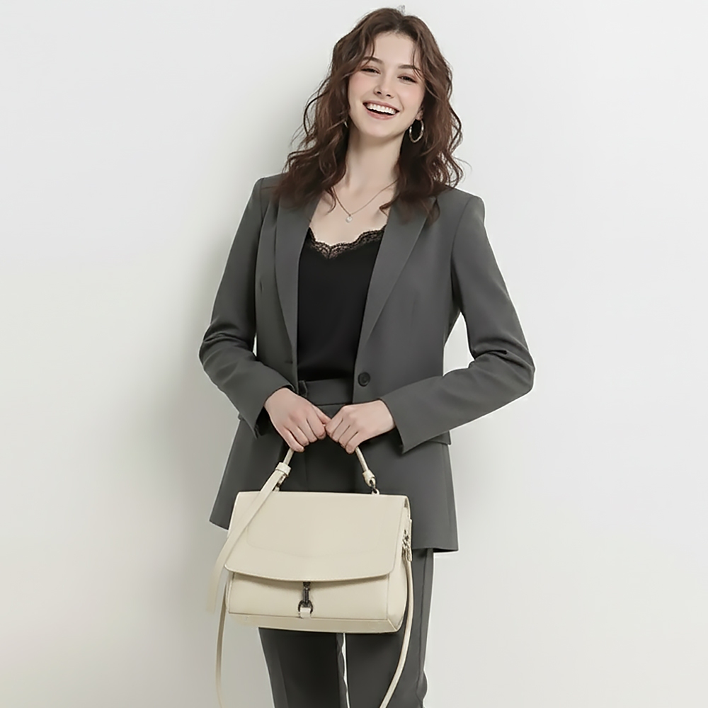 A&L老工匠-頭層牛皮真皮Abigail時尚流蘇郵差斜背包(真皮包包 甜米白)