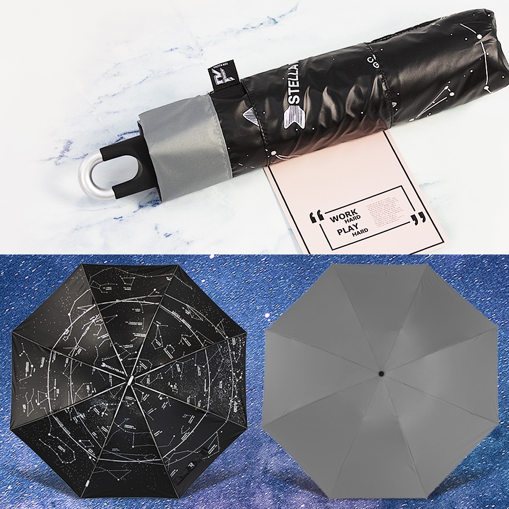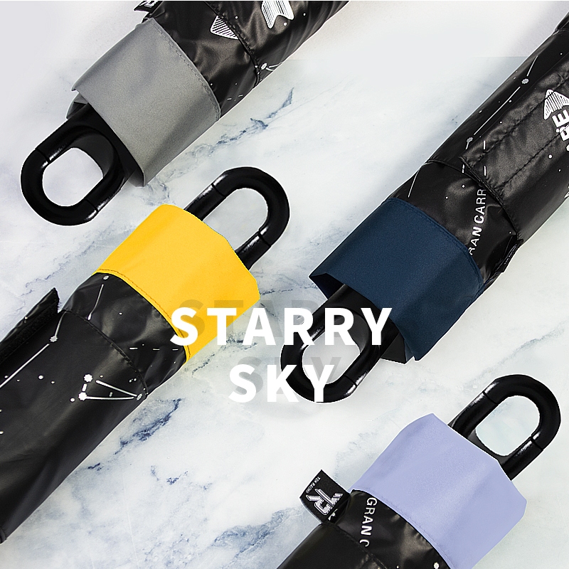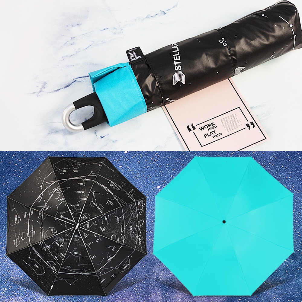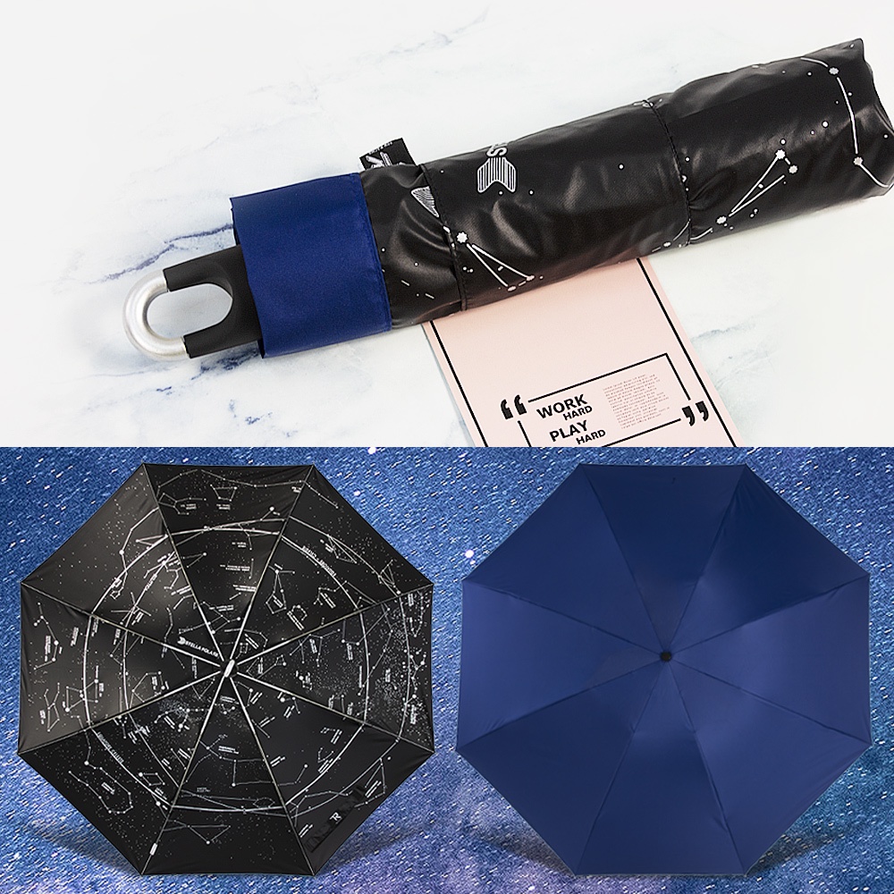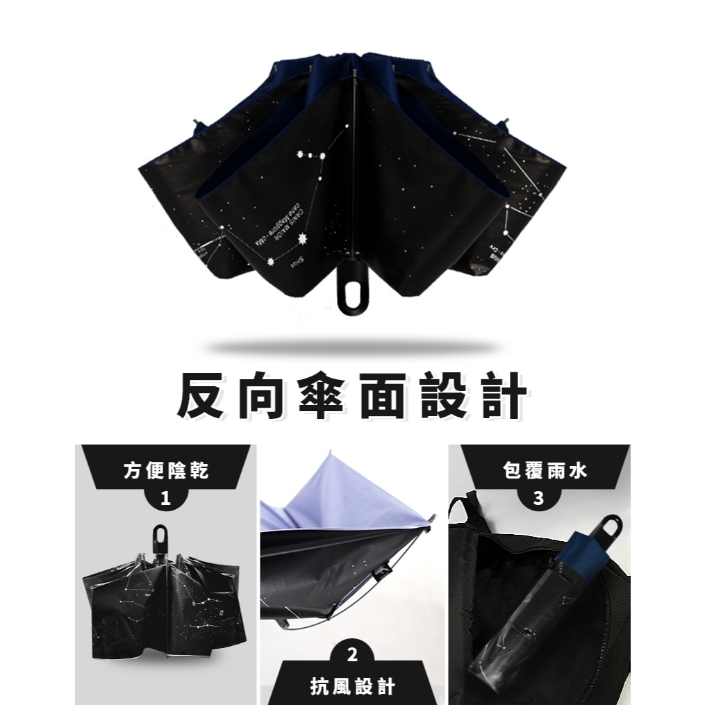 【TDN】一鍵秒收 超輕量星空加大降溫秒收傘黑膠反向傘自動收傘(超強防風折傘晴雨傘B7433)
