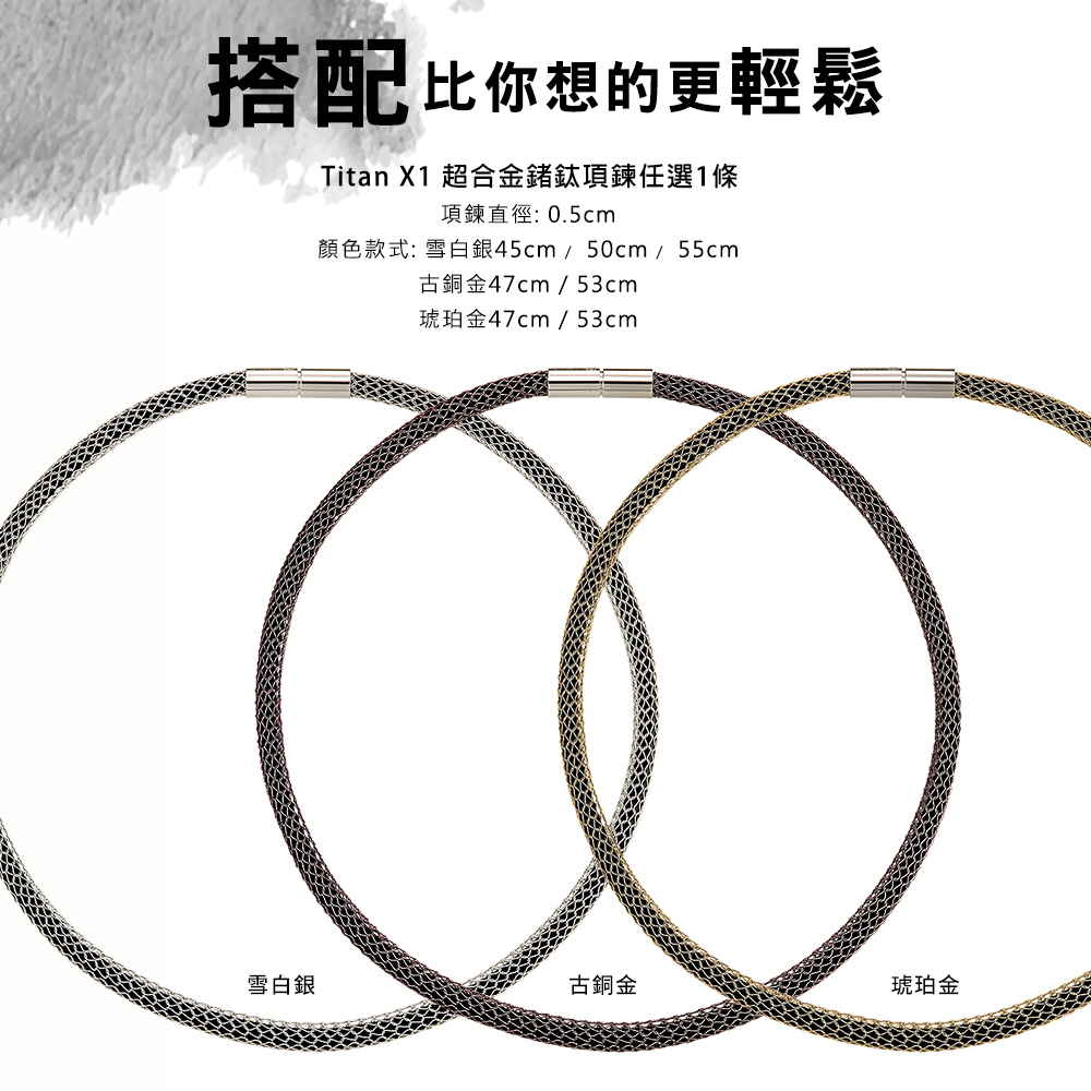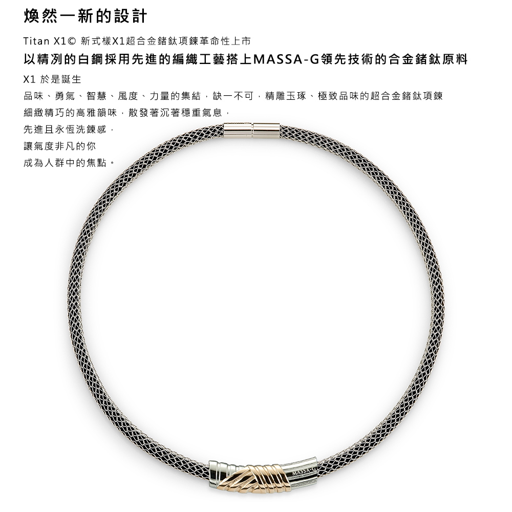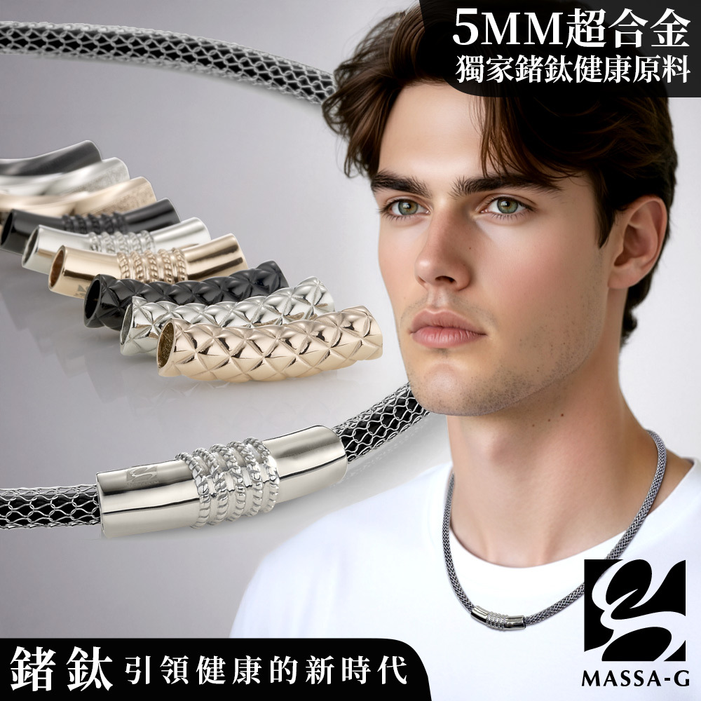 MASSA-G Titan X1 5mm超合金鍺鈦項鍊搭配白鋼彎墬
