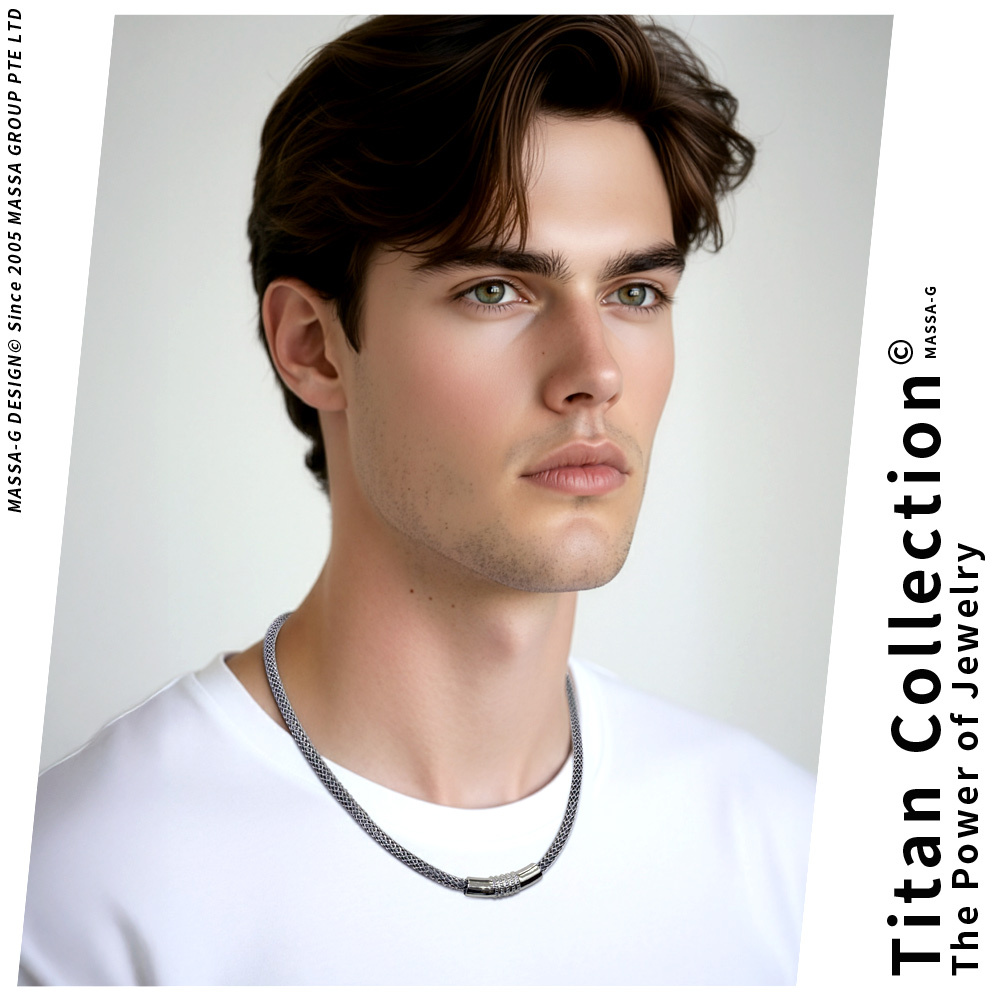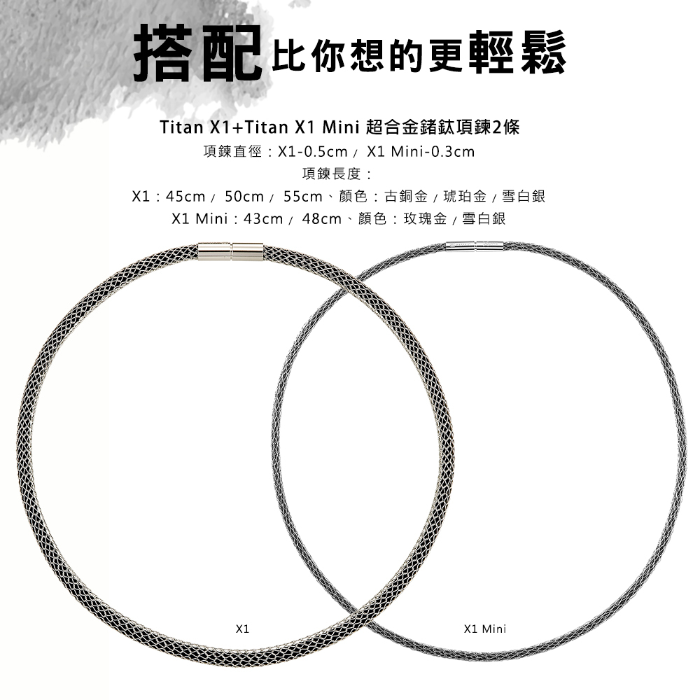 MASSA-G 白鋼彎墬搭配X13mm+5mm超合金鍺鈦項鍊(對鍊)
