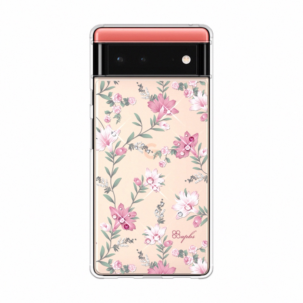 apbs Google Pixel 6 & Pixel 6 pro 輕薄軍規防摔水晶彩鑽手機殼-小清新-粉劍蘭