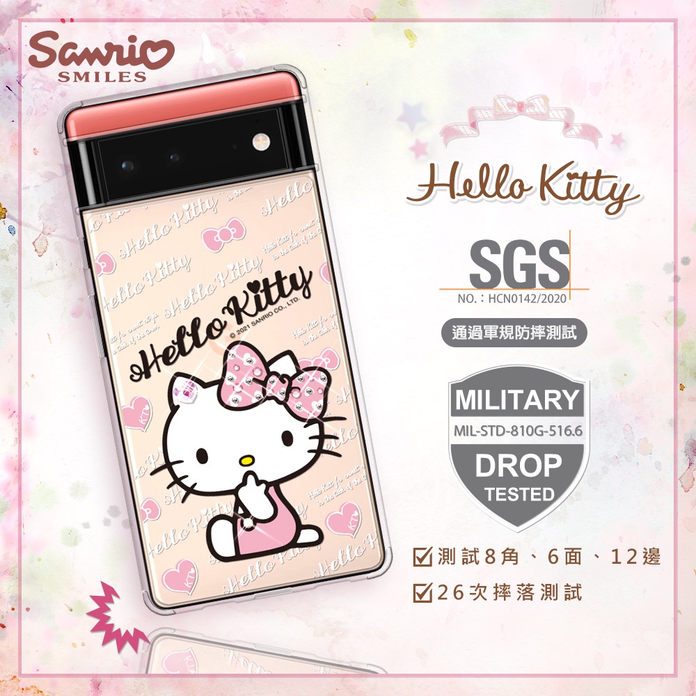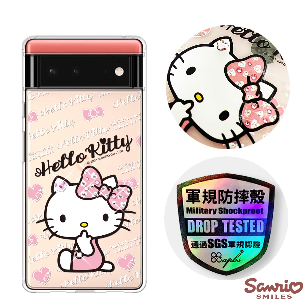 三麗鷗 Kitty Google Pixel 6 輕薄軍規防摔彩鑽手機殼-凱蒂呆呆萌