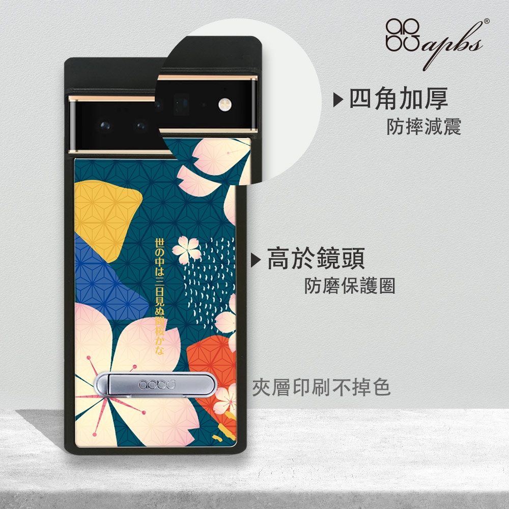 apbs Google Pixel 9/8/7/6系列 減震立架手機殼-墨綠櫻花俳句