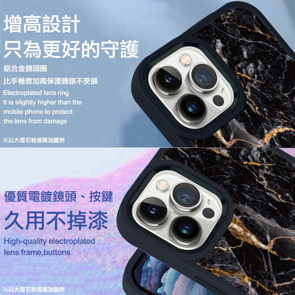 apbs iPhone 15 14 S24/S23系列 軍規防摔鋁合金鏡頭框立架手機殼-大理石敦煌黑