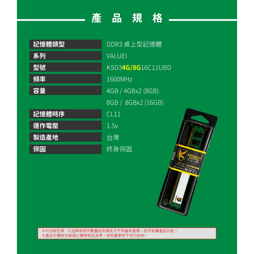 AITC 艾格 KINGSMAN DDR3 1600 4GB UDIMM 桌上型記憶體 桌電 終身保固