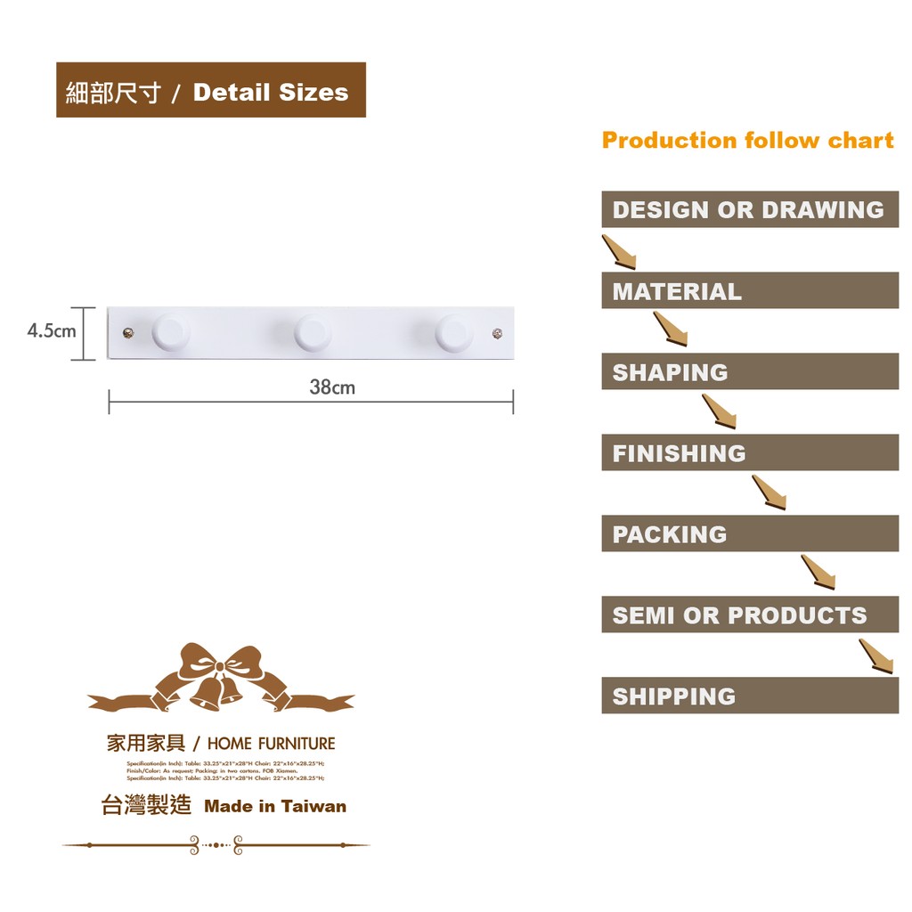 歐德萊 [白色木製3掛勾] 白色掛鉤 木製掛鉤 衣帽掛勾 木質壁掛勾 民宿必備 飯店必備 居家必備