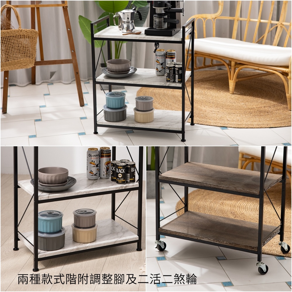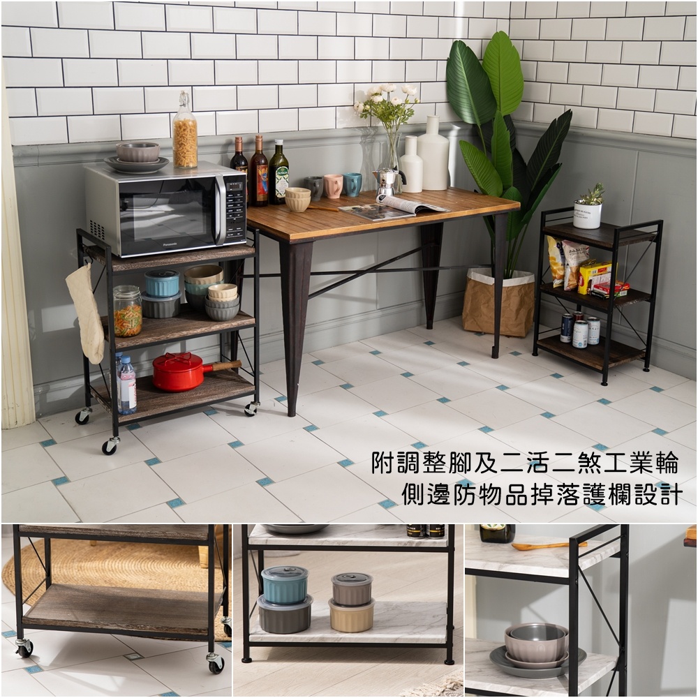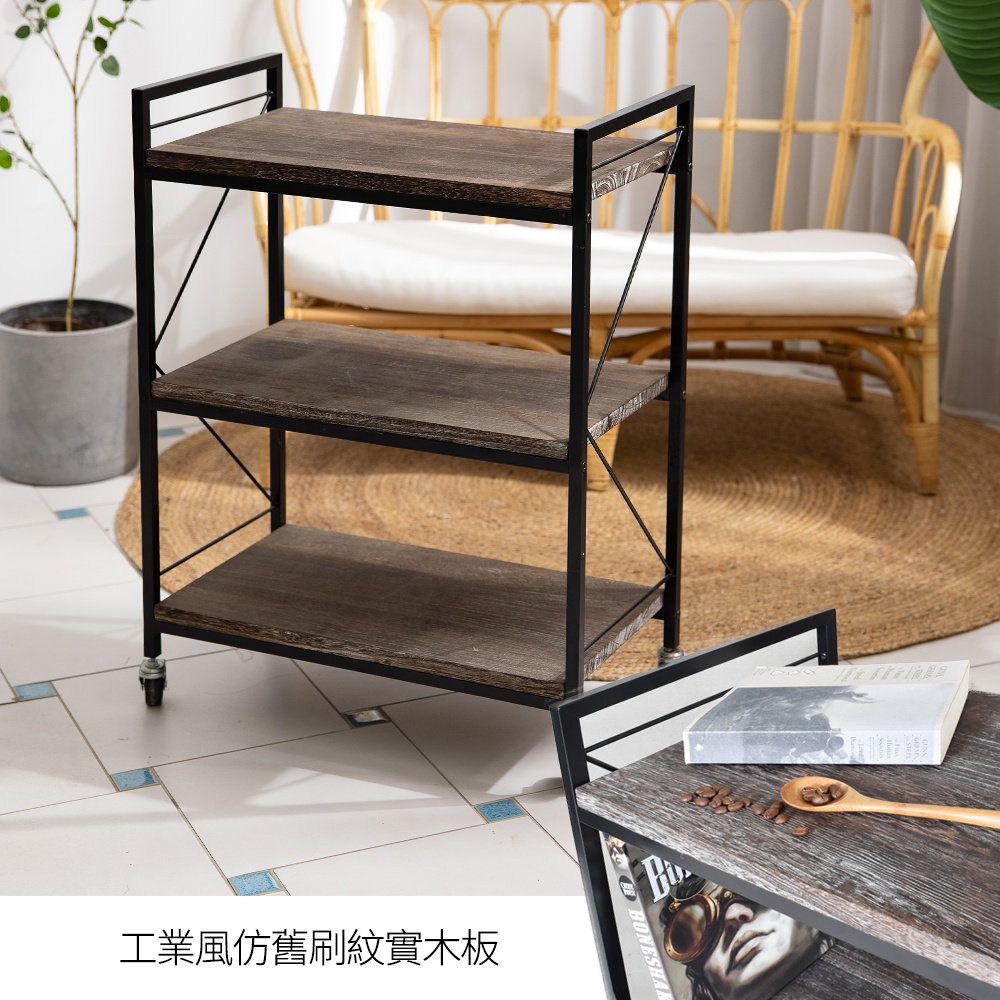 歐德萊 LOFT工業風原木刷紋三層推車 置物推車 工業風 收納推車 書架 電器架 電器櫃 廚房收納架 廚房置物架