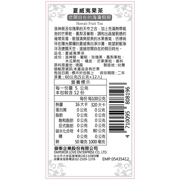 【御奉】夏威夷果茶包-複方仕女椪粉盒(12入) 花草 茶 花果茶 德國 三角立體茶包 無咖啡因 好茶旗艦店