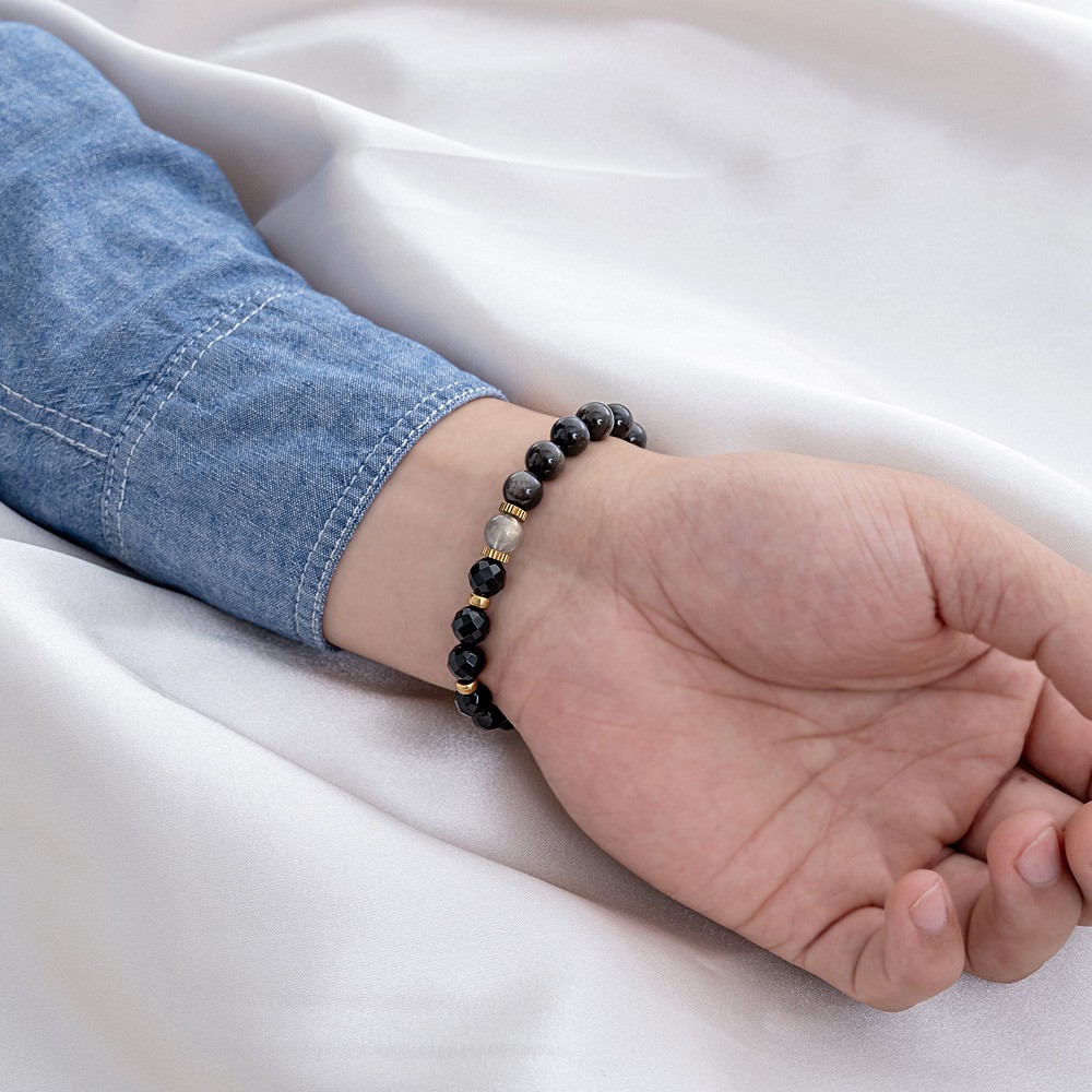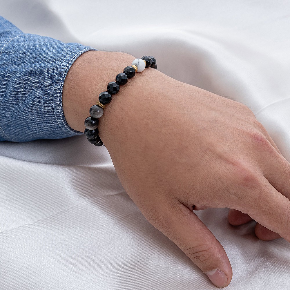 Hermu Accessories 守護閃耀‧月光石銀曜石水晶彈性手環-(男款)E40033