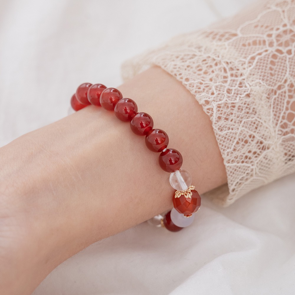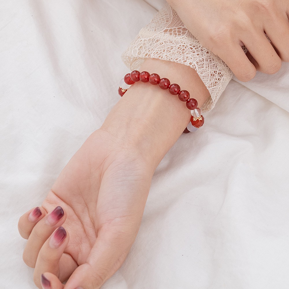 Hermu Accessories 一抹嫣紅‧紅瑪瑙彈性手環-E40002