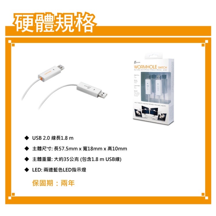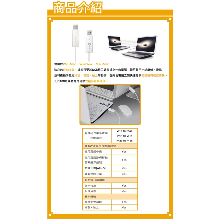 【j5create 凱捷】USB 2.0 跨系統資料對傳線 Wormhole Switch - JUC400 跨系統傳輸