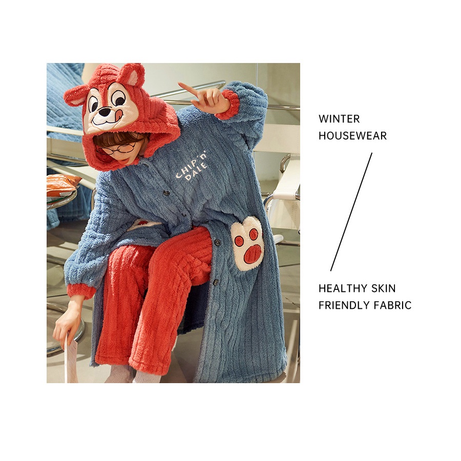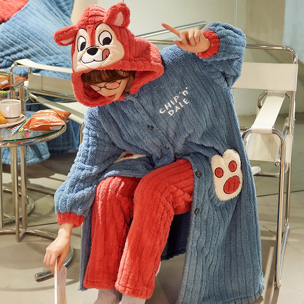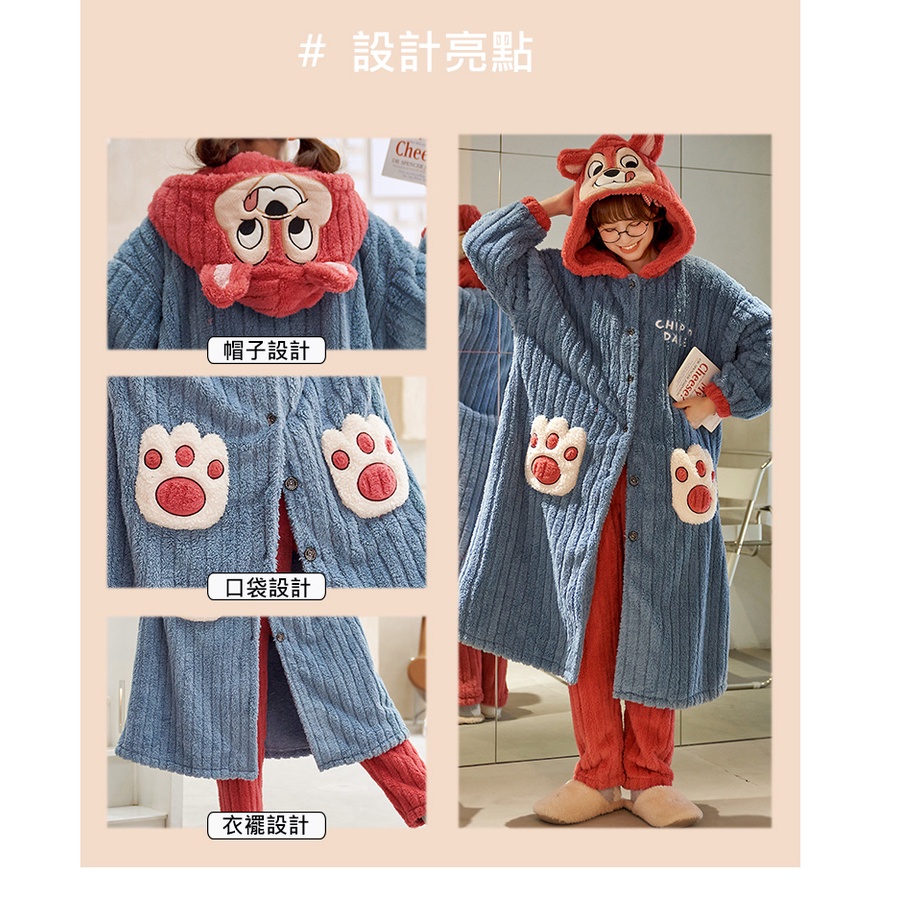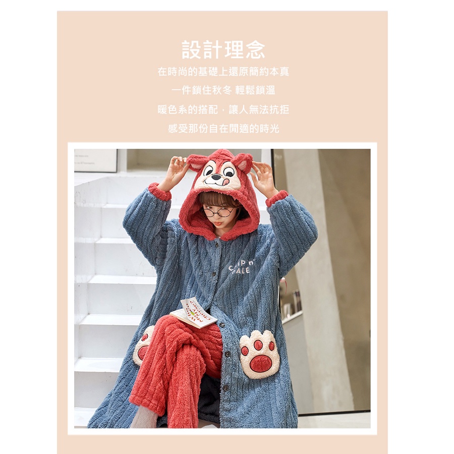 【Wonderland】花栗鼠長毛絨連帽睡袍衣褲組