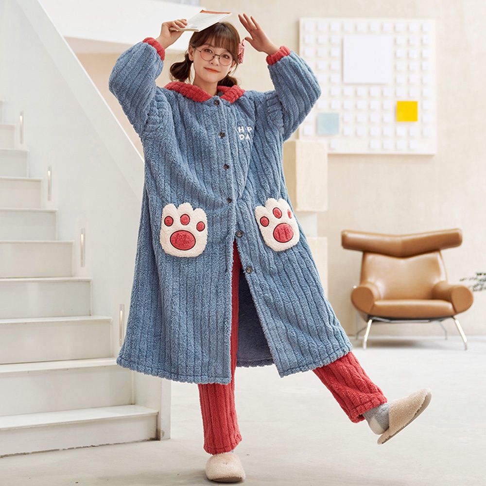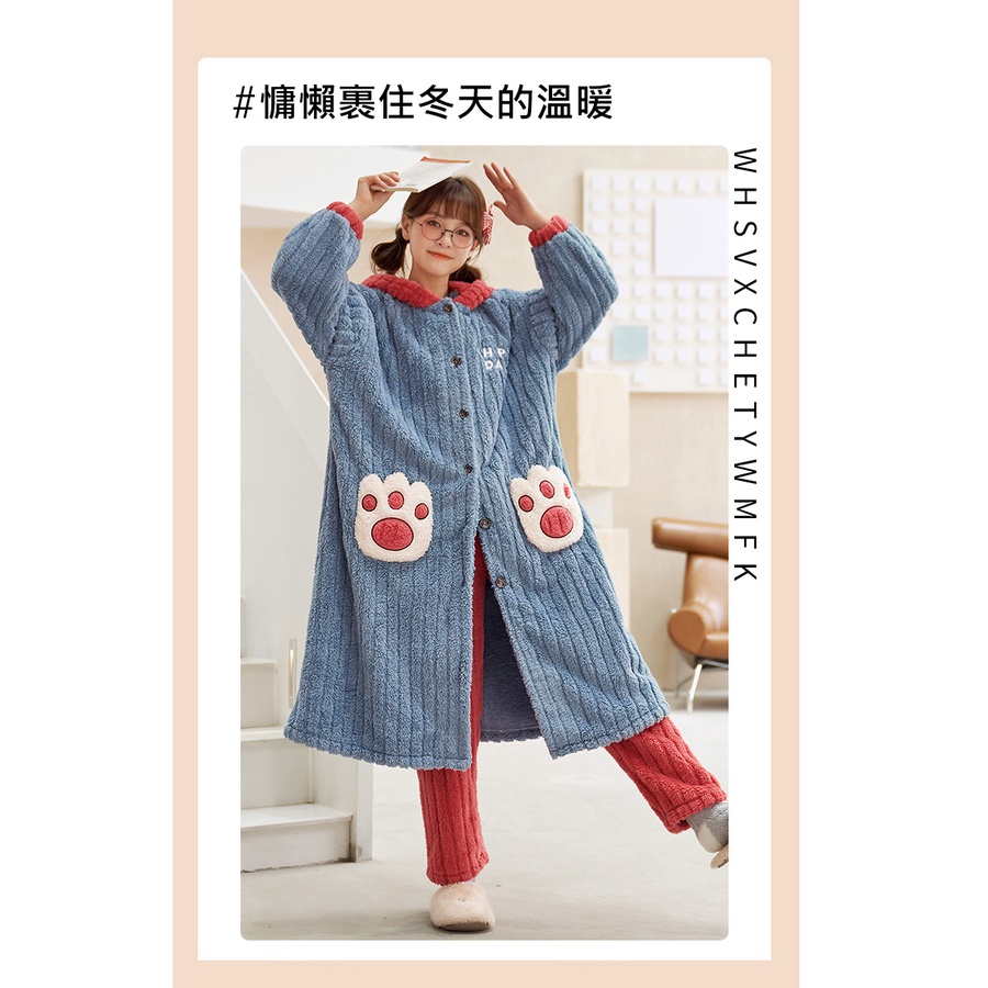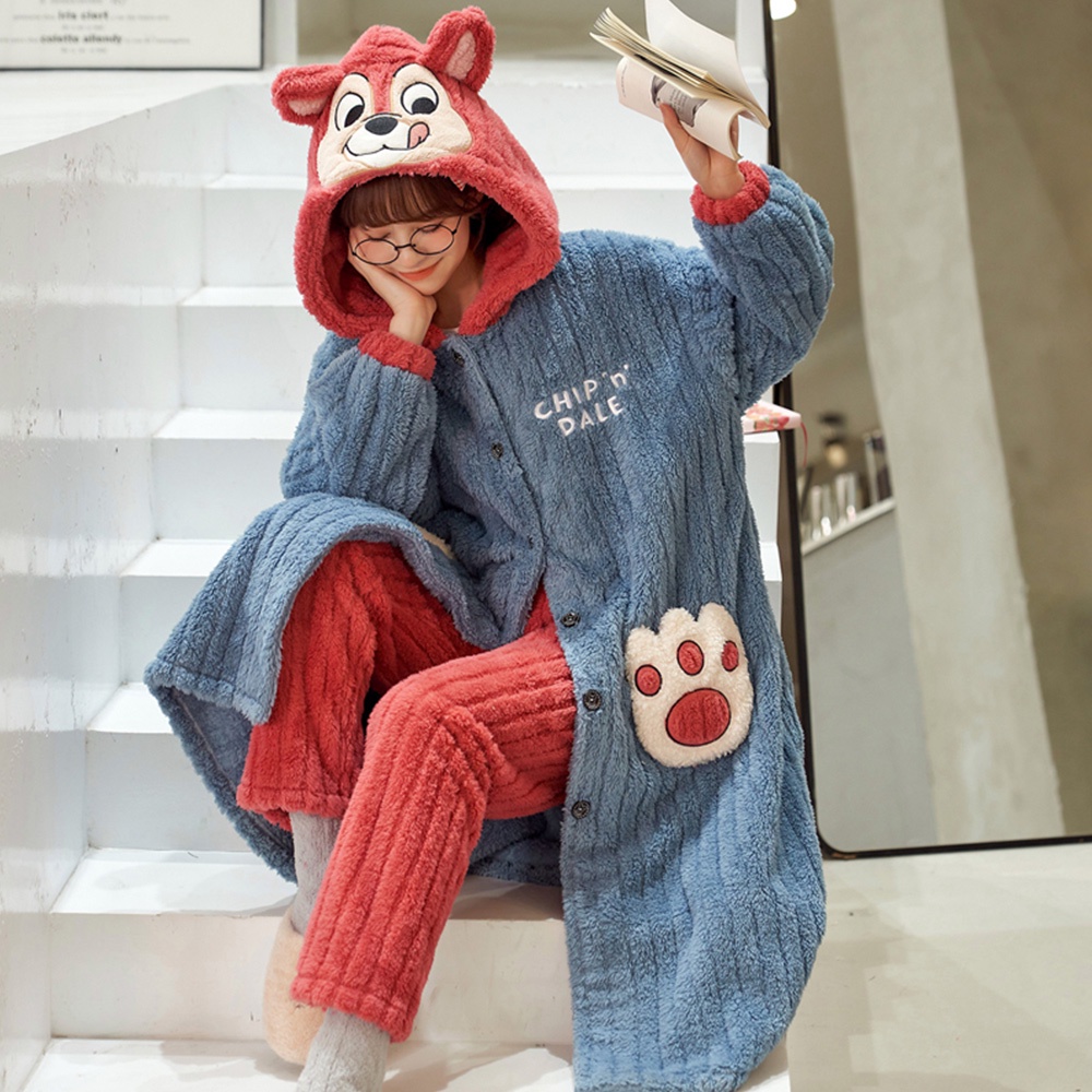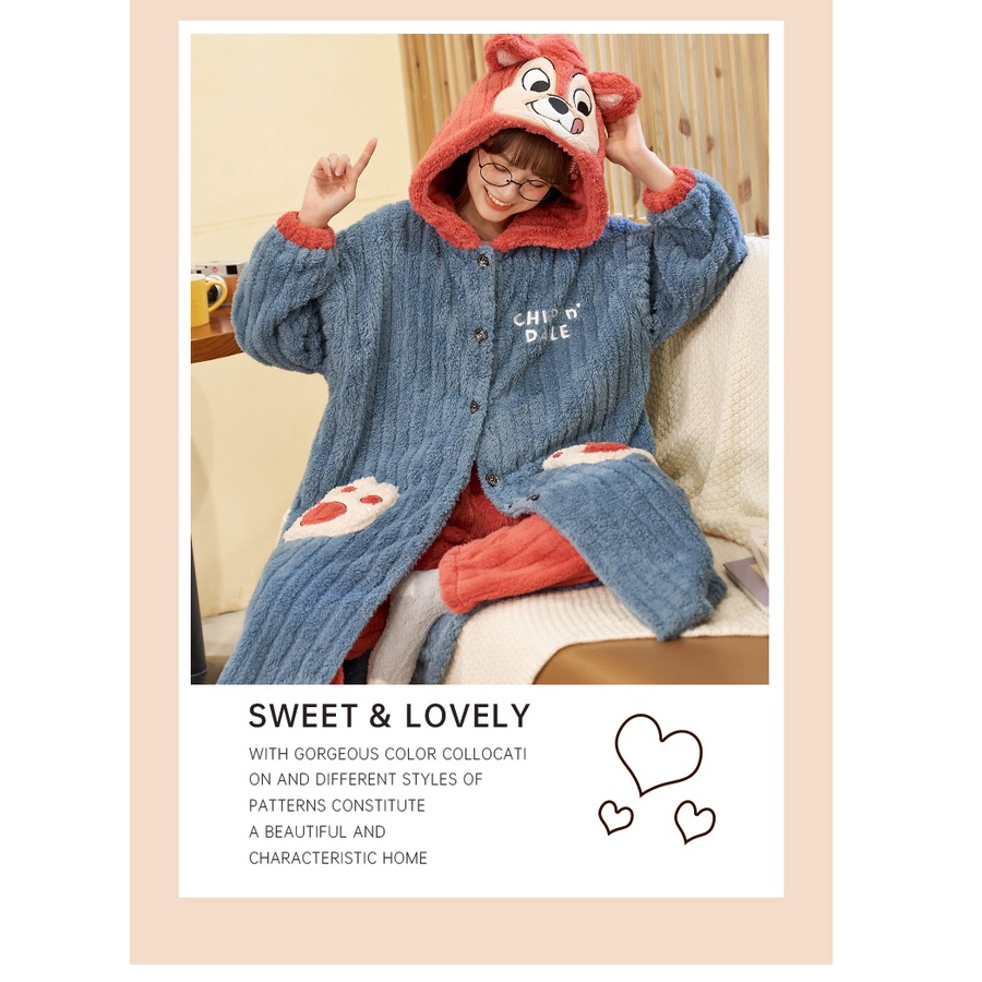 【Wonderland】花栗鼠長毛絨連帽睡袍衣褲組