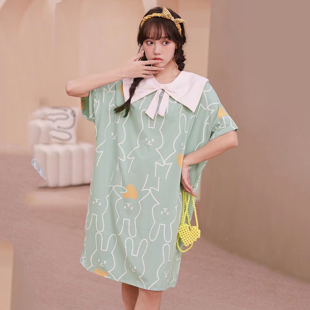 【Wonderland】擁抱愛心的兔仔純棉公主領寬鬆睡裙