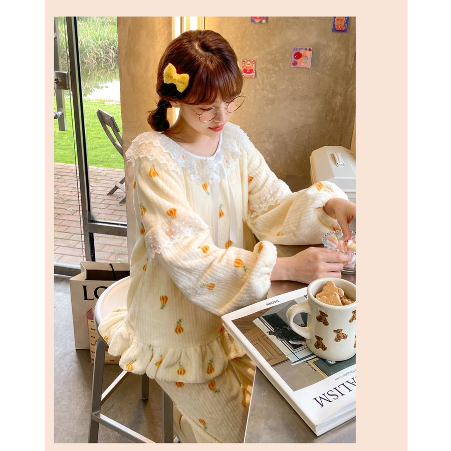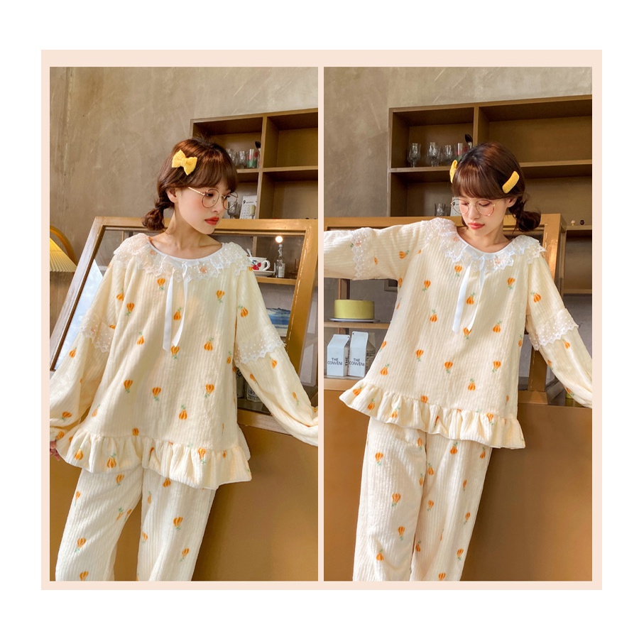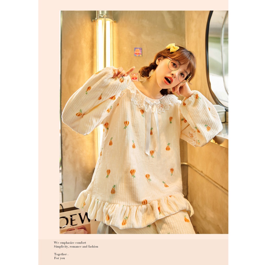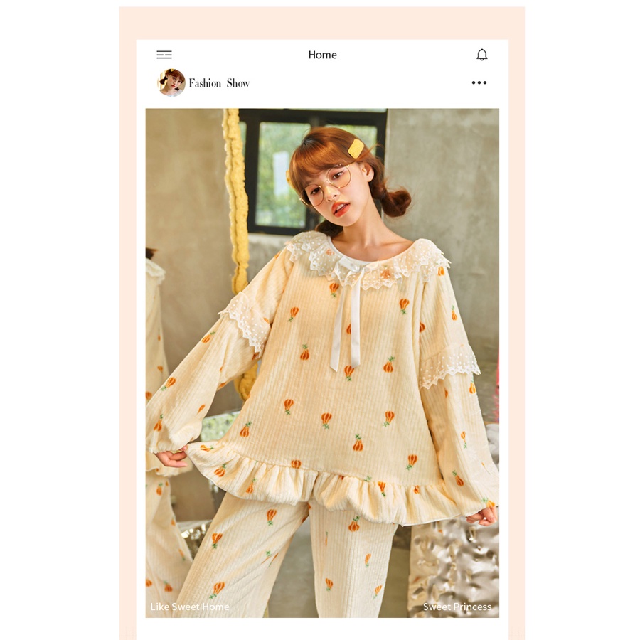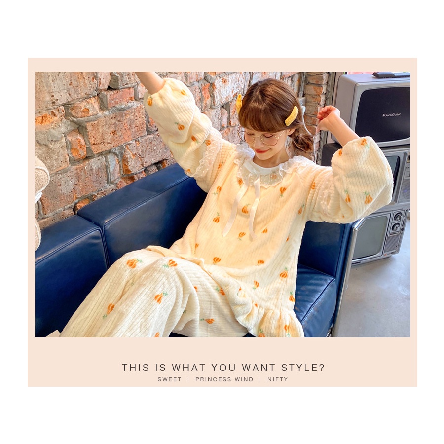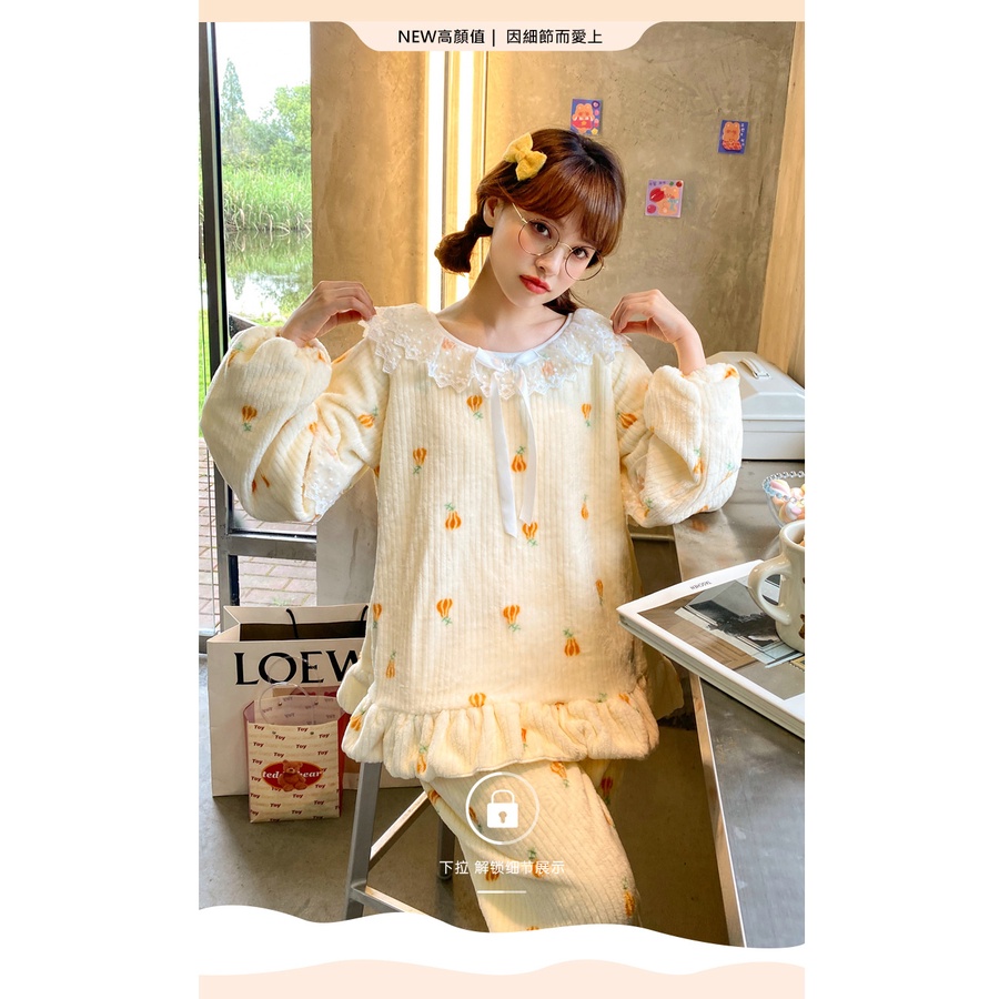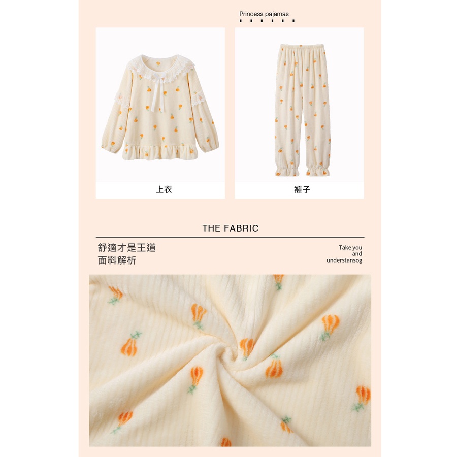 【Wonderland】葫蘆瓜印花抽條絨保暖睡衣褲組(XL)