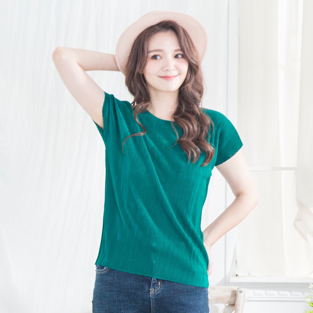 【Wonderland】國際名品風修身壓摺上衣(綠)