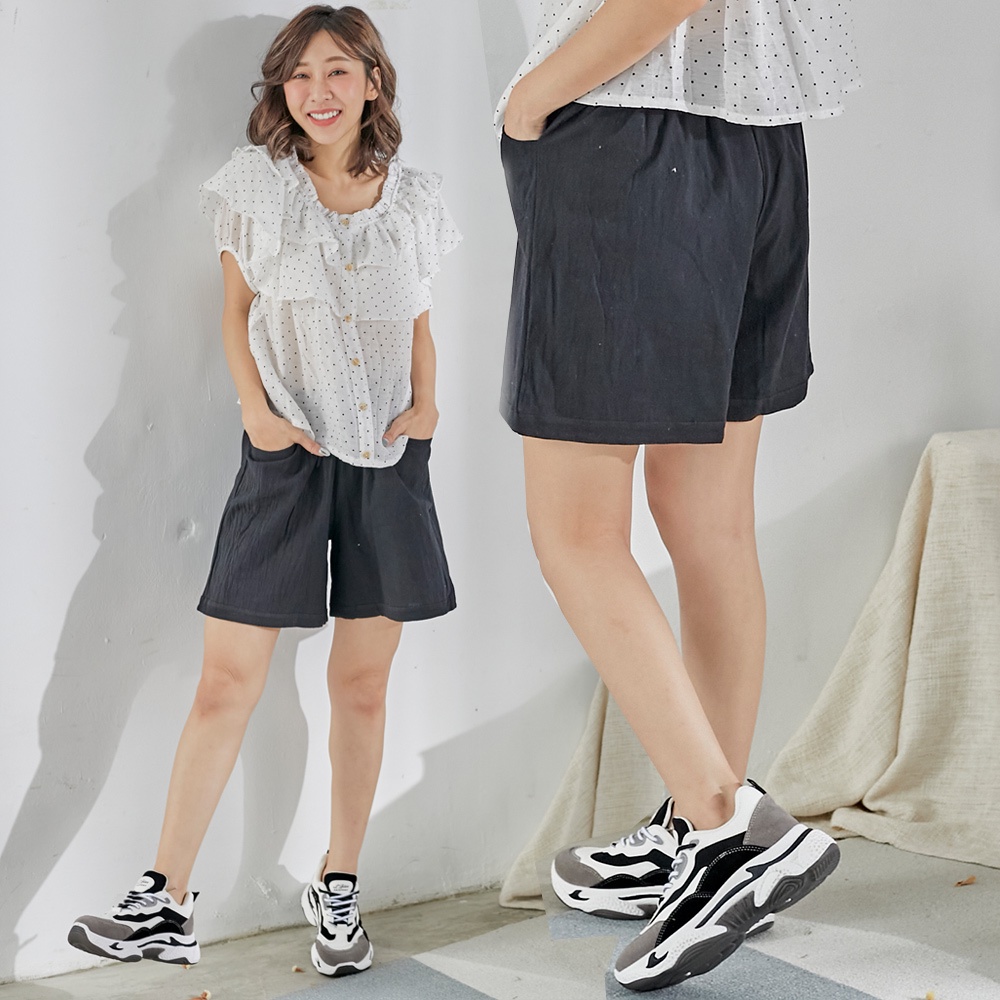 【Wonderland】嚴選天然日本涼爽水洗棉短褲(黑)(XL)
