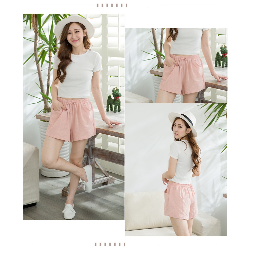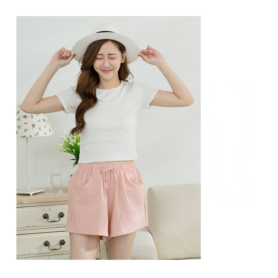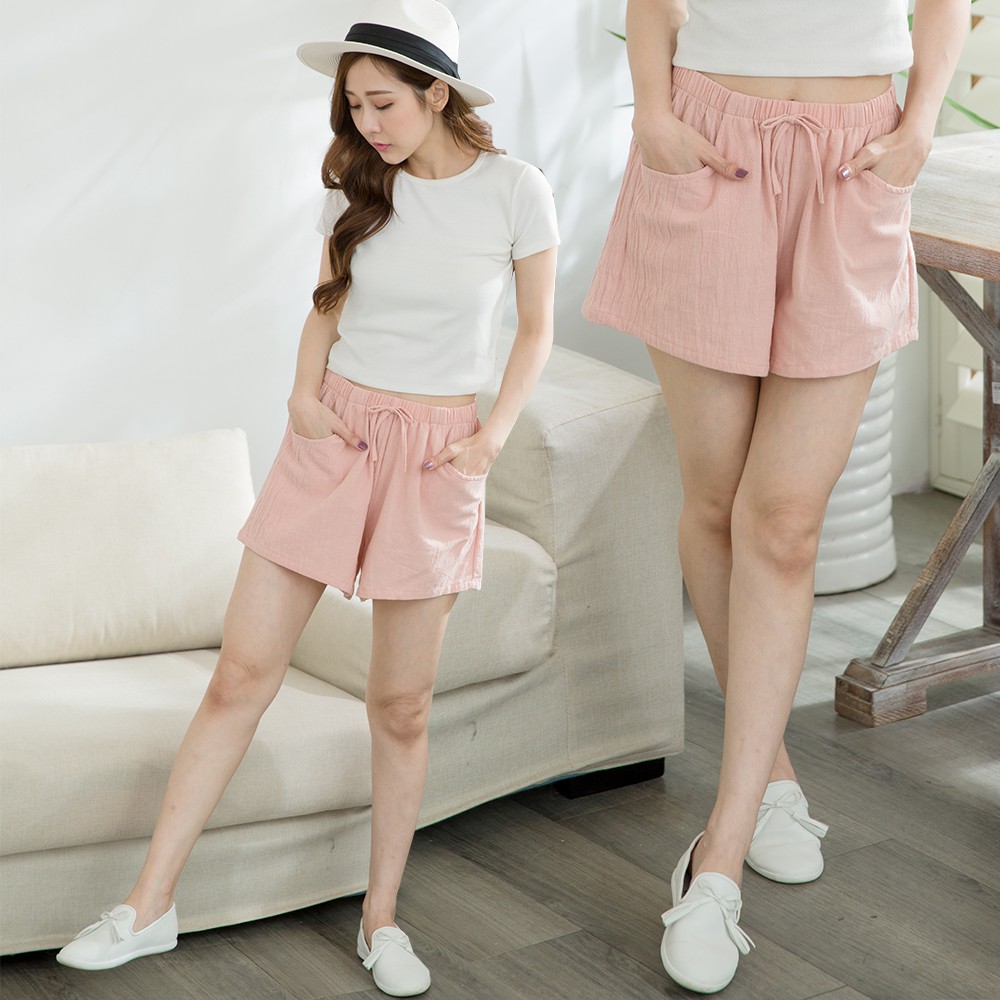 【Wonderland】純色韓版顯瘦純棉休閒短褲(粉)