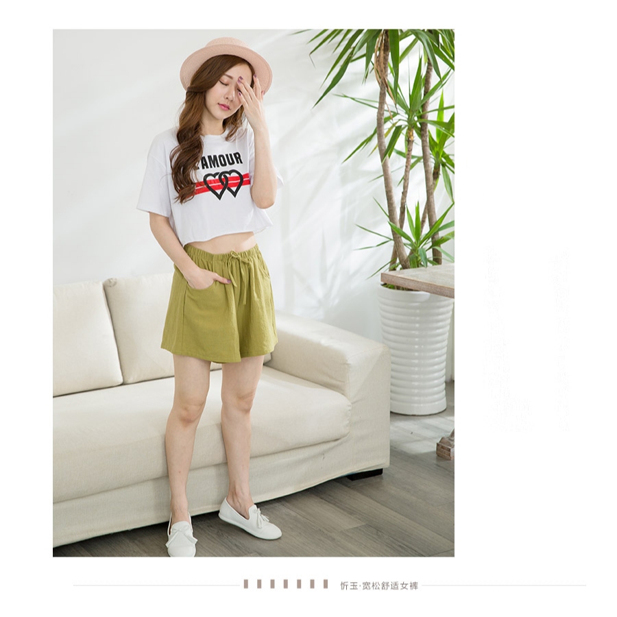 【Wonderland】純色韓版顯瘦純棉休閒短褲(草地綠)