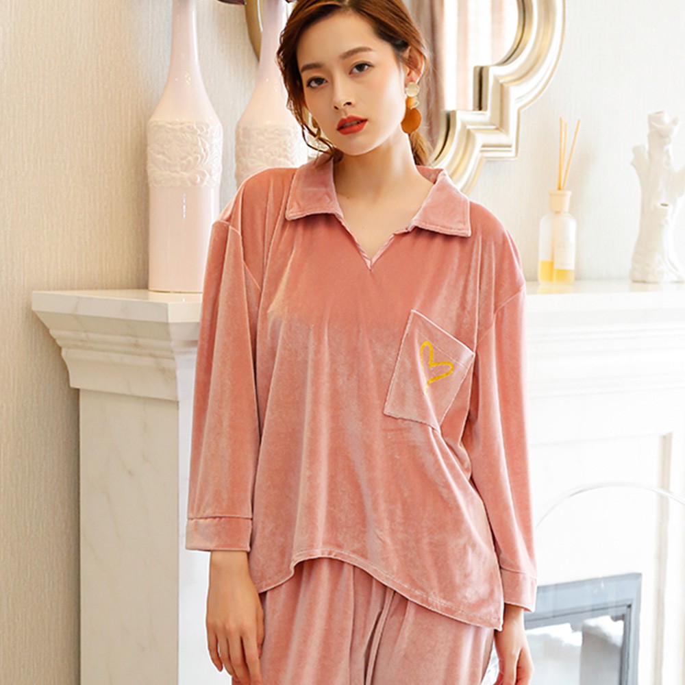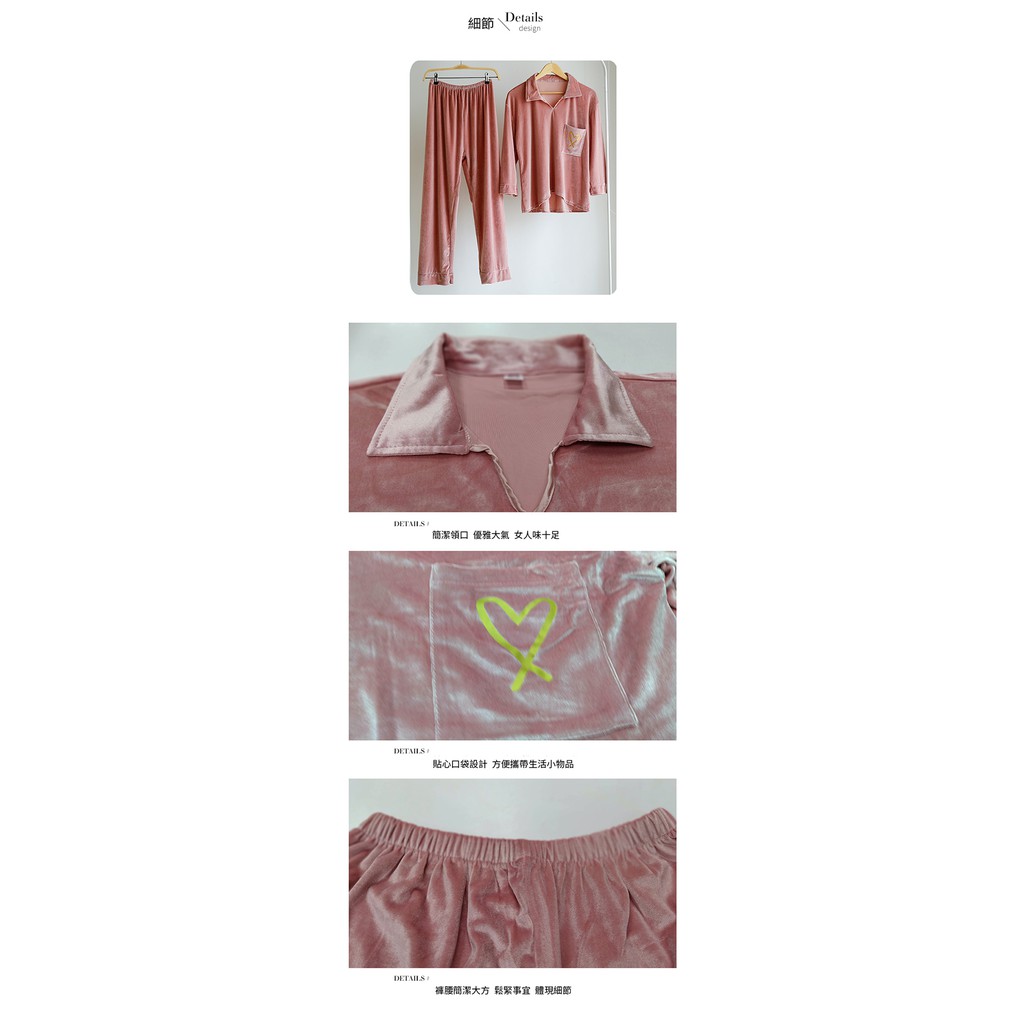 【Wonderland】秋季風尚金絲絨衣褲組(粉)(L)