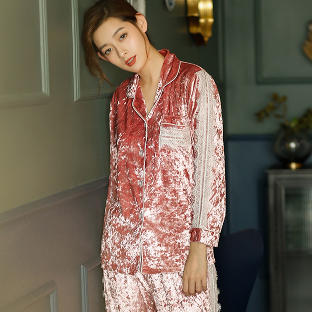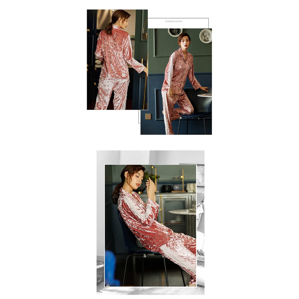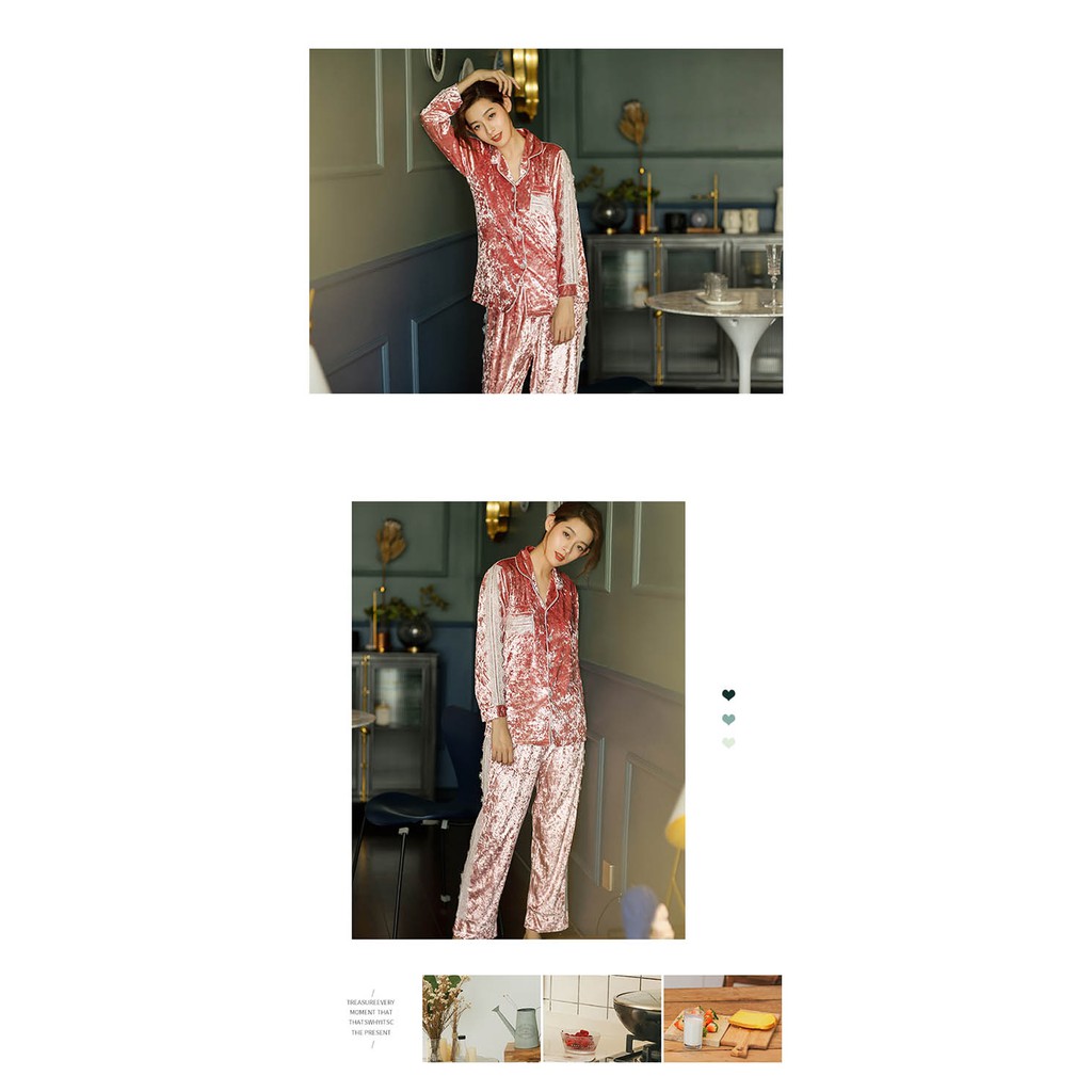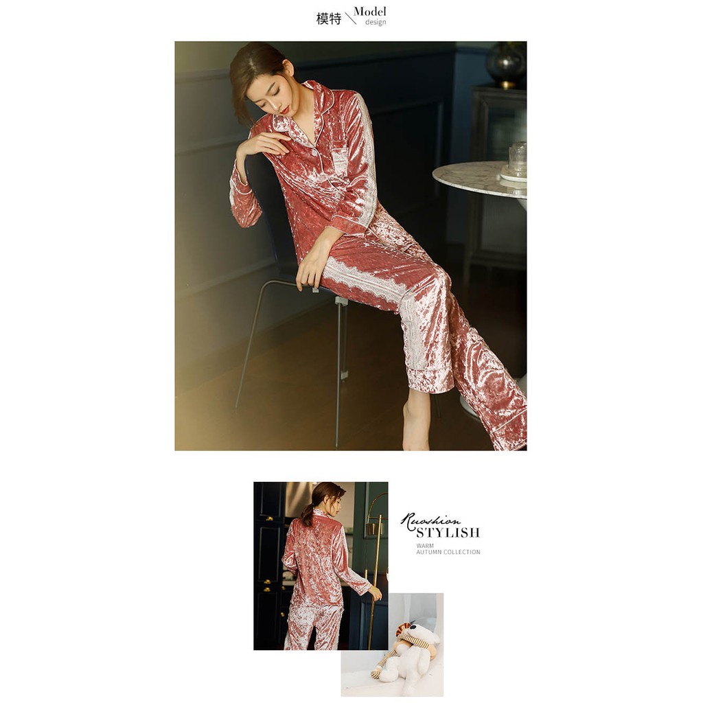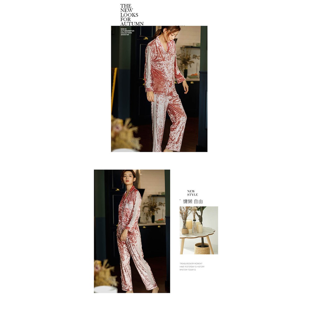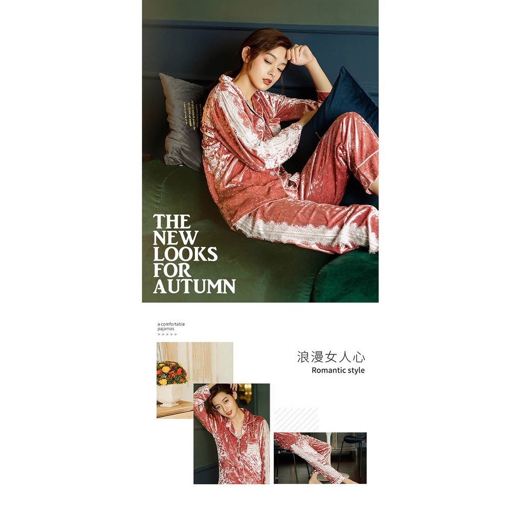 【Wonderland】魅力裸肌金絲絨衣褲組(粉)(L)