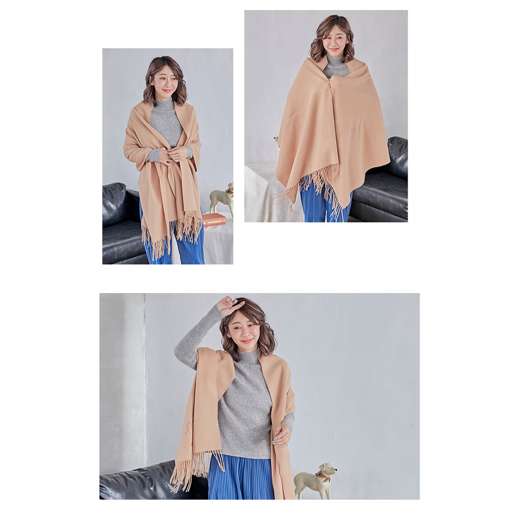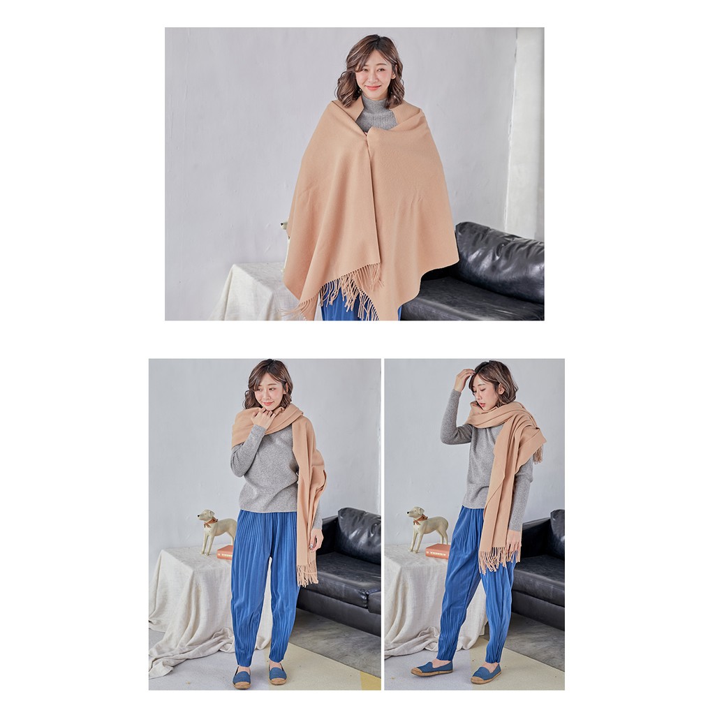 【Wonderland】經典素色100%純羊毛披肩(駝)