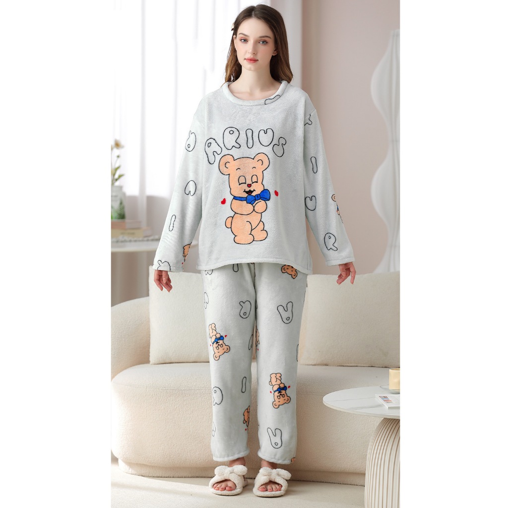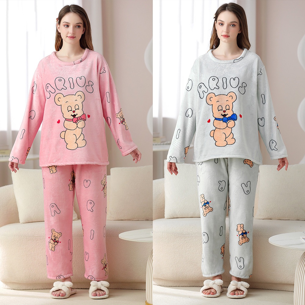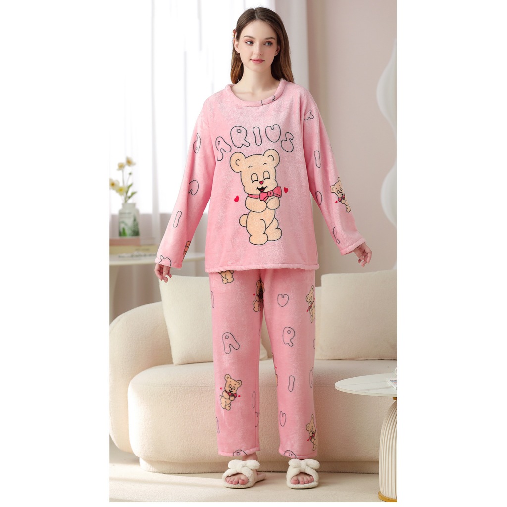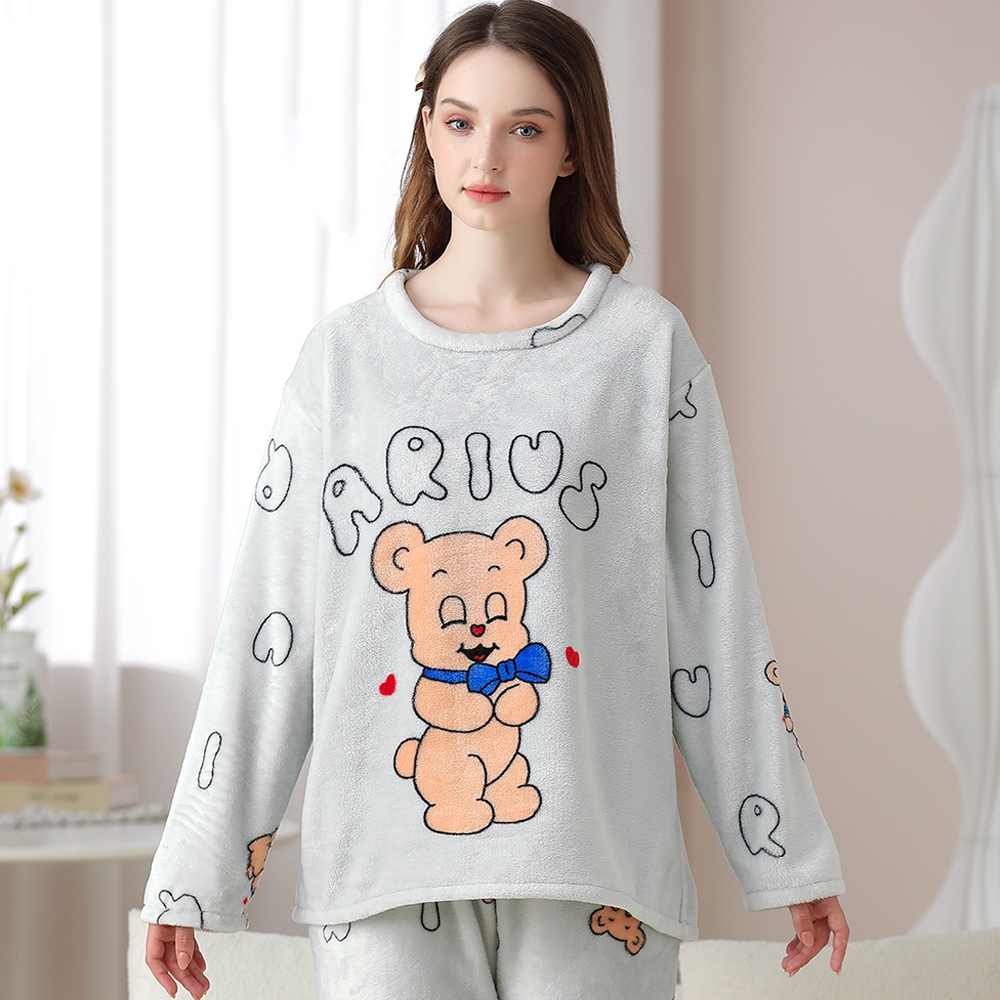 【Wonderland】暖心熊熊水貂絨長袖保暖睡衣褲家居服