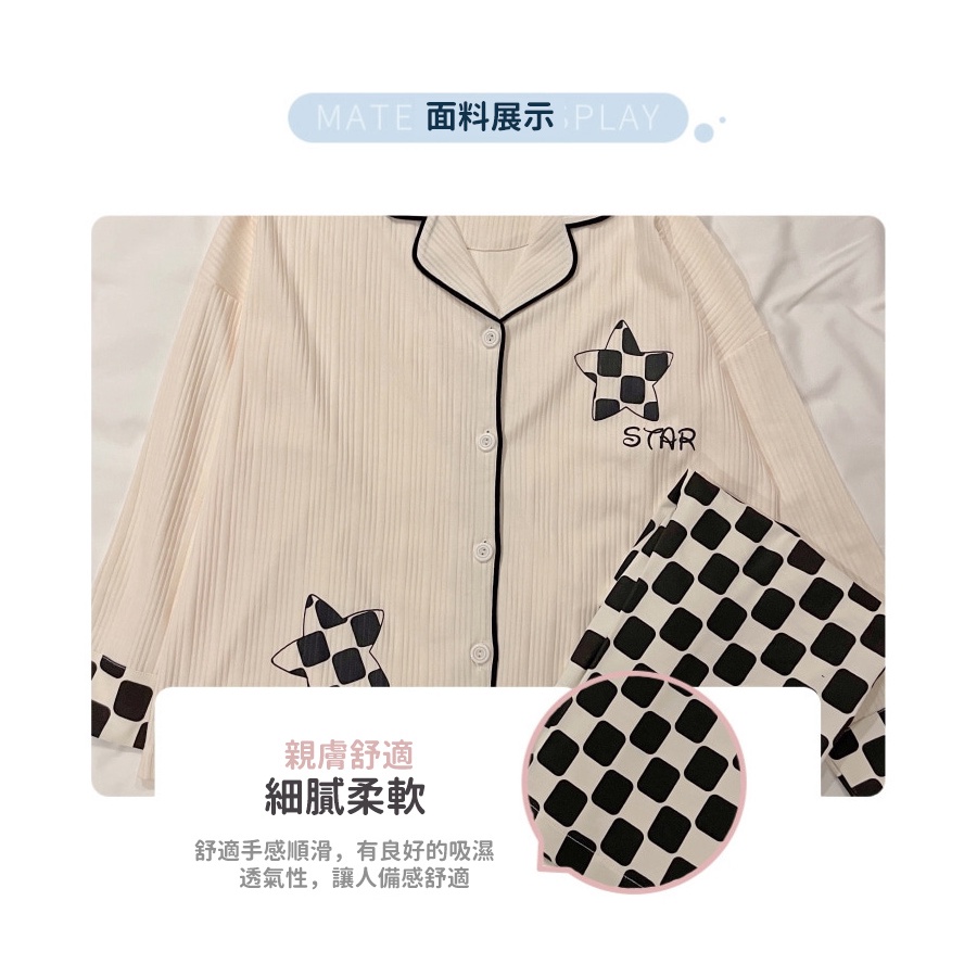 【Wonderland】格子星星居家休閒兩件式睡衣褲組(XL)
