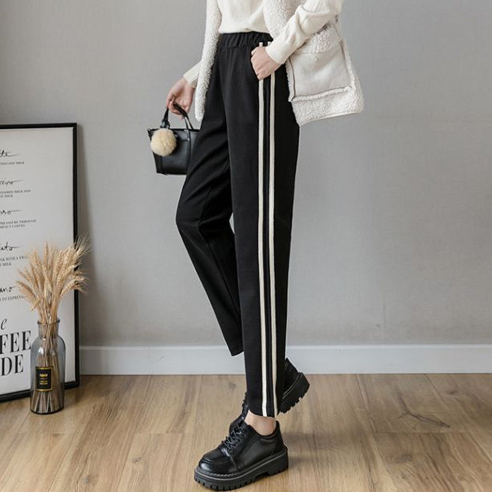 【Wonderland】潮流撞色毛呢直筒褲(黑)