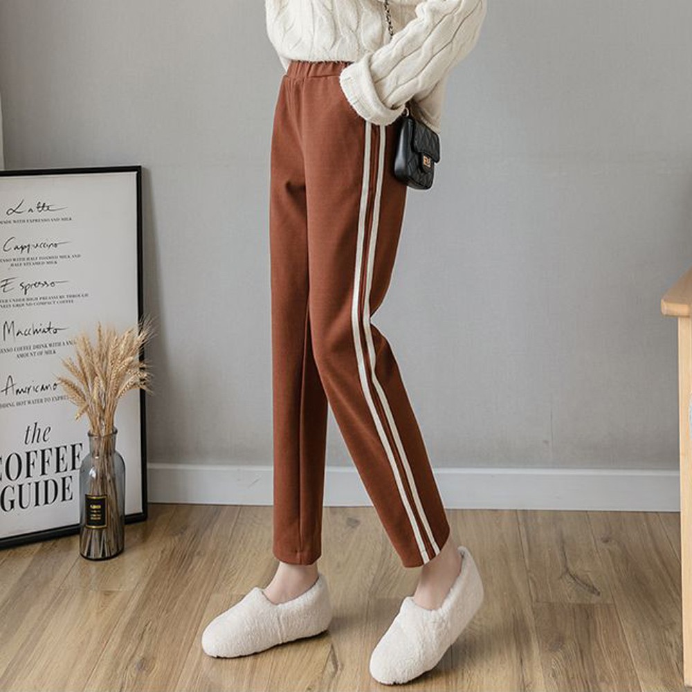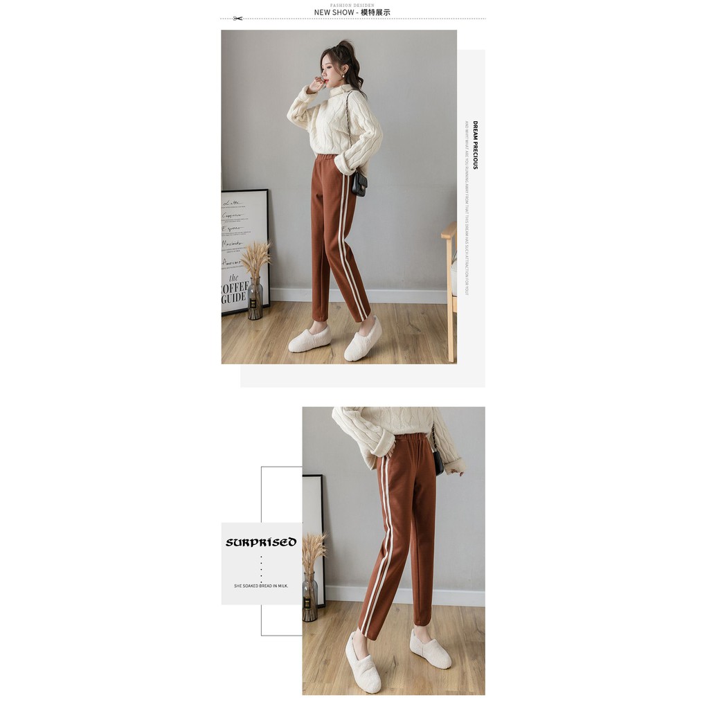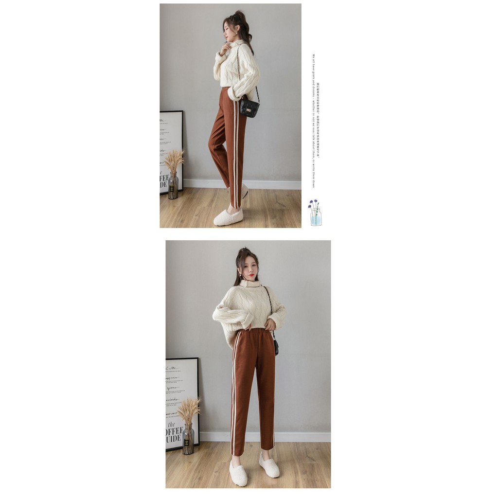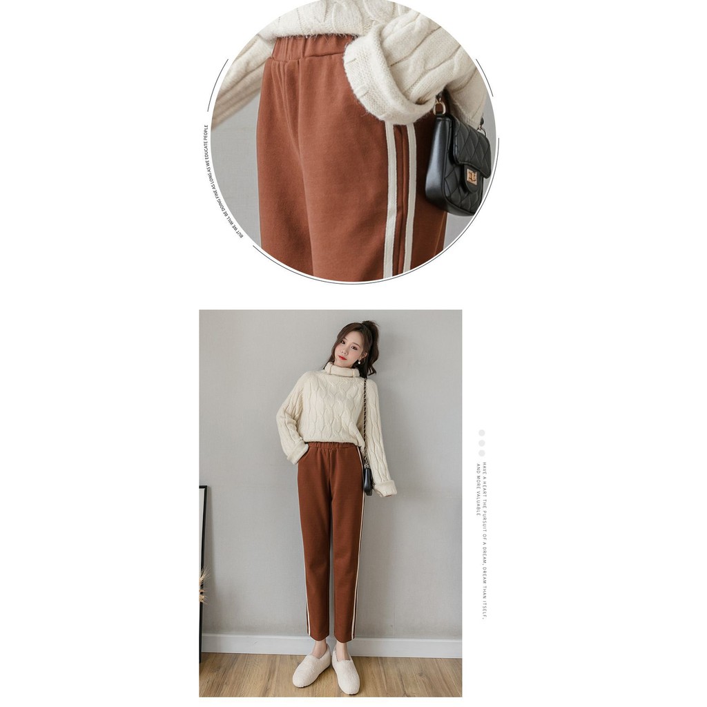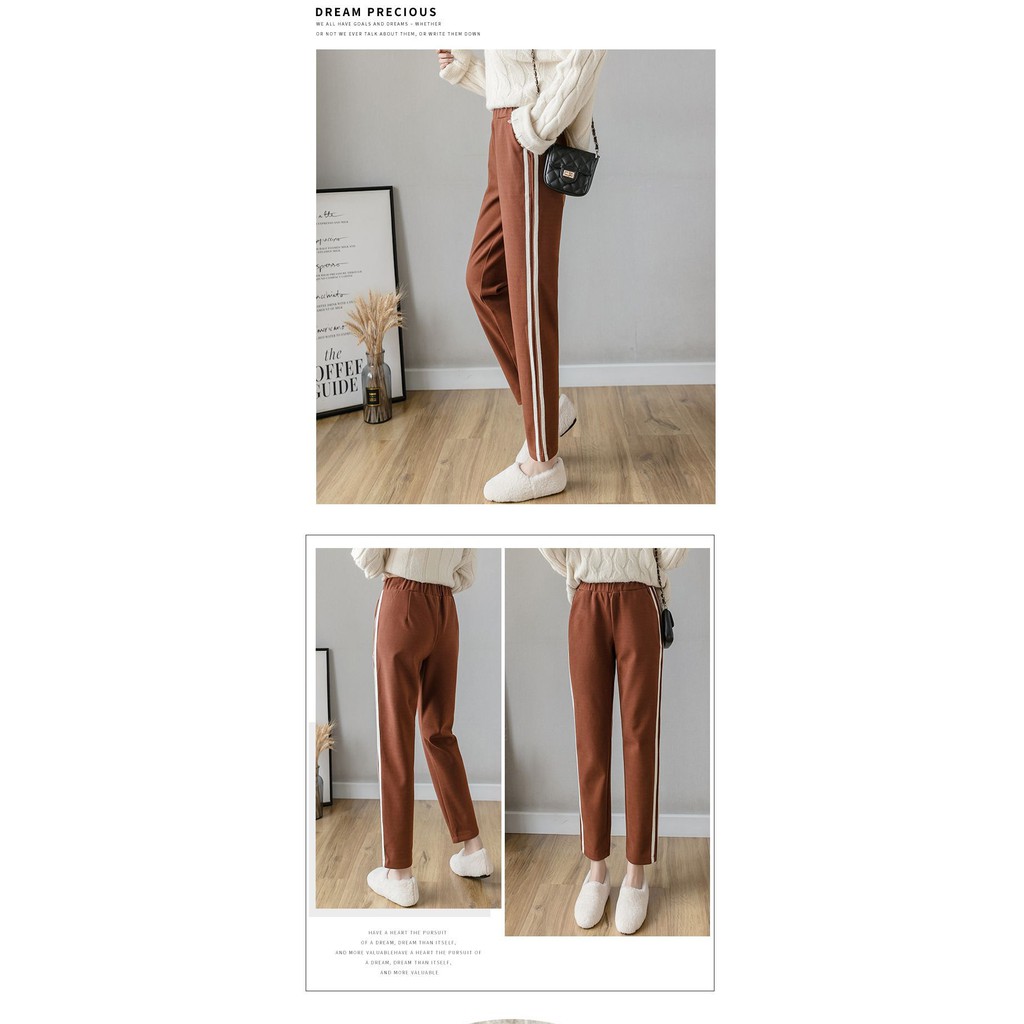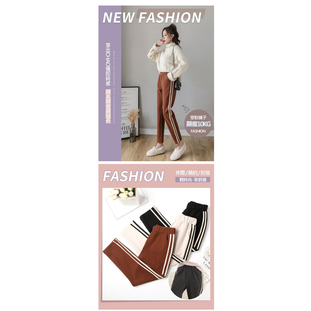 【Wonderland】潮流撞色毛呢直筒褲(焦糖)