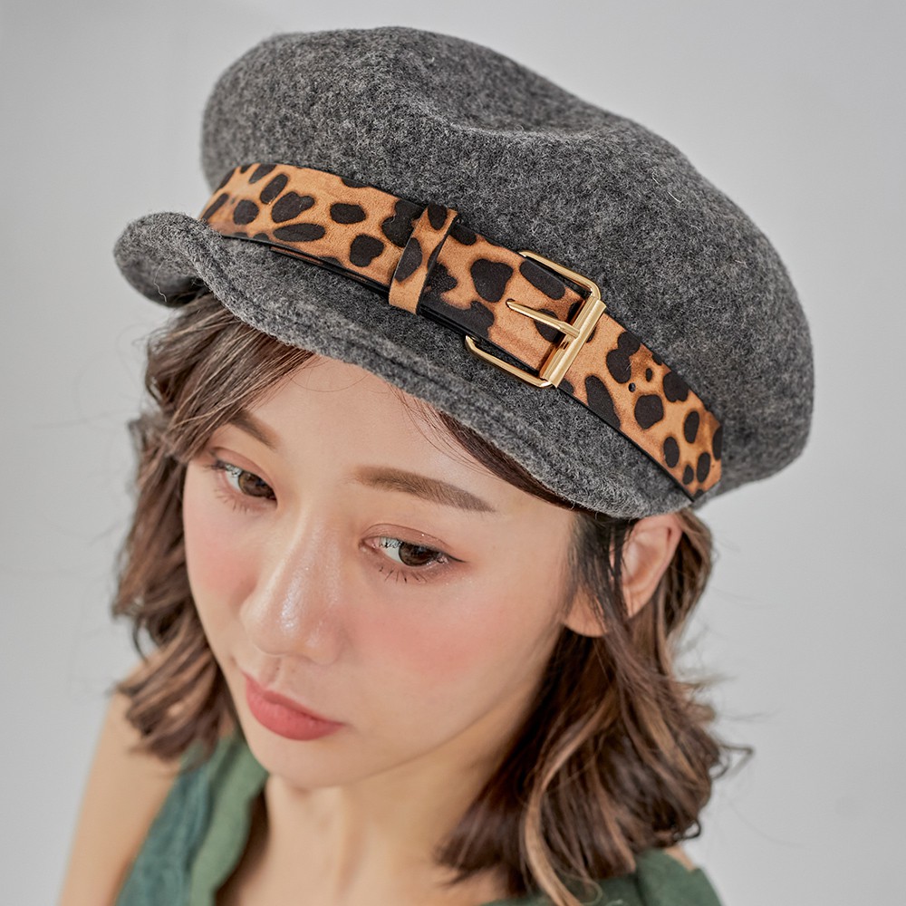 【Wonderland】豹紋金屬貝雷帽(深灰)