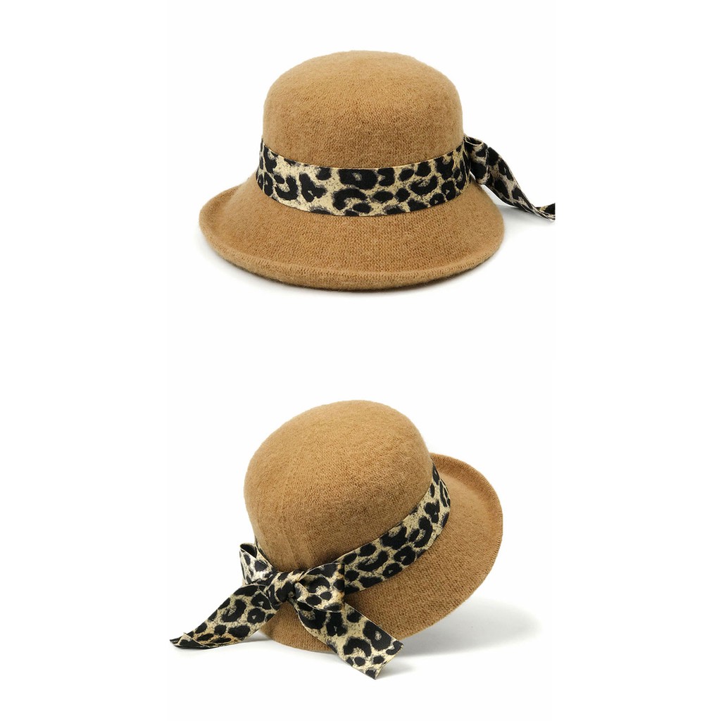 【Wonderland】豹紋緞帶蝴蝶結帽(卡其)