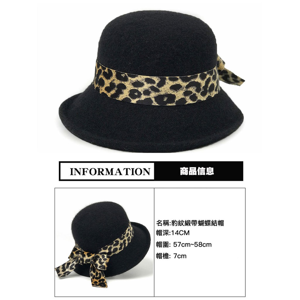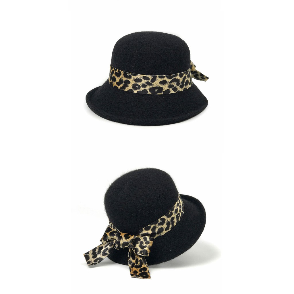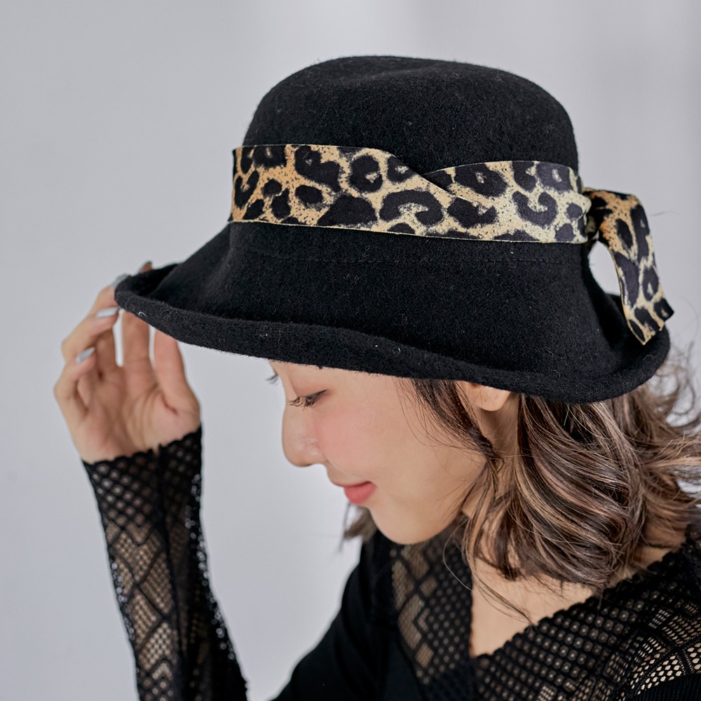 【Wonderland】豹紋緞帶蝴蝶結帽(黑)