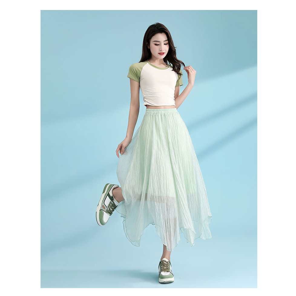 【Wonderland】浪漫邂逅不規則飄逸高腰A字裙
