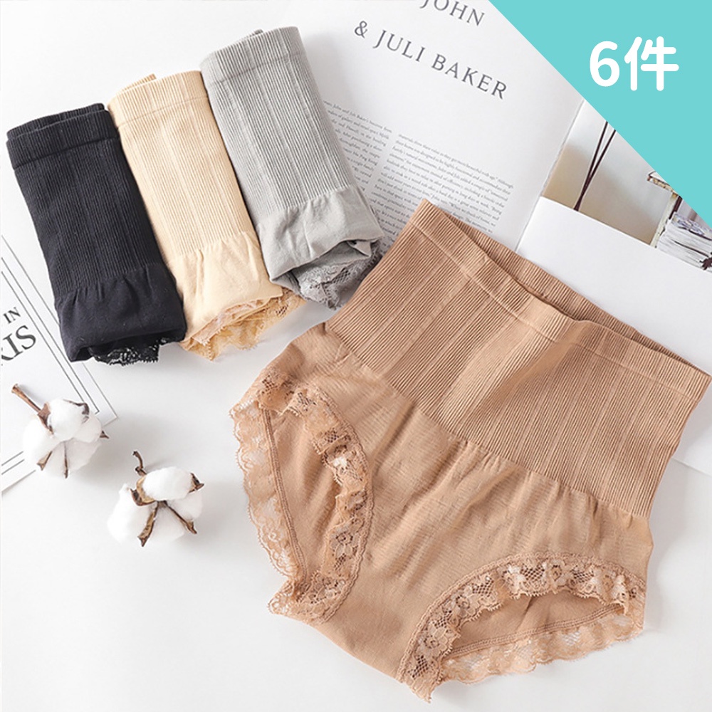 【Wonderland】高腰收腹暖宮提臀無縫蕾絲內褲(6件組)
