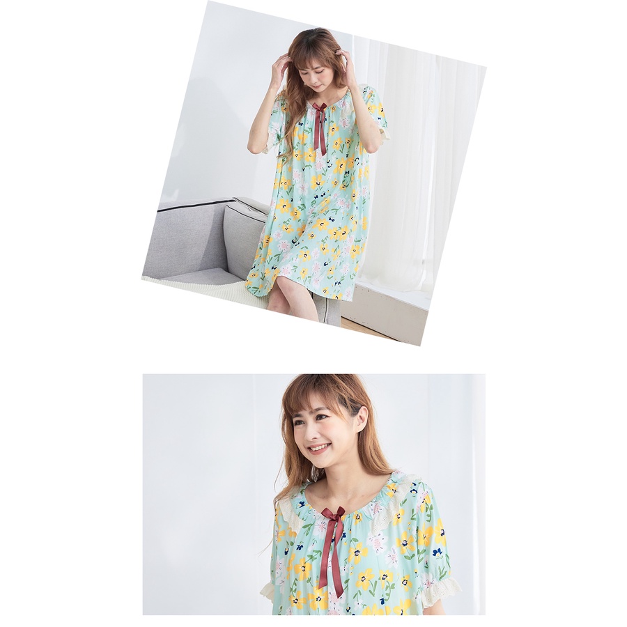 【Wonderland】花兒綻放100%嫘縈涼爽蝴蝶結睡裙(綠)