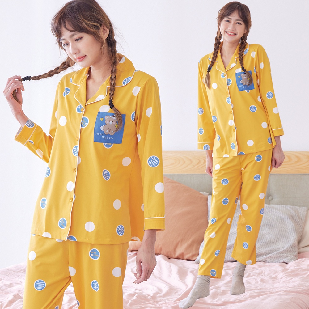 【Wonderland】聖誕小熊居家休閒兩件式睡衣褲組(薑黃)