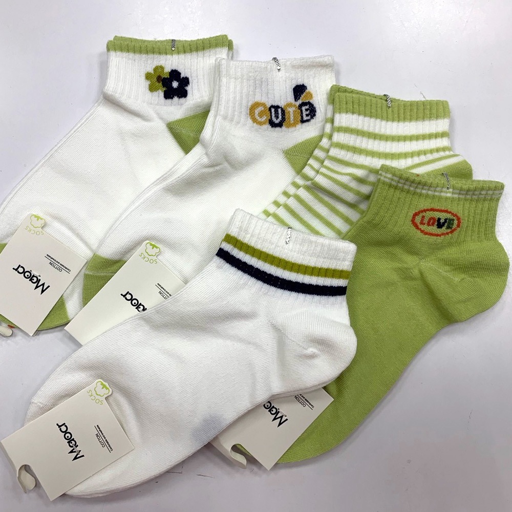【Wonderland】字母花朵日系棉質短襪(5雙)
