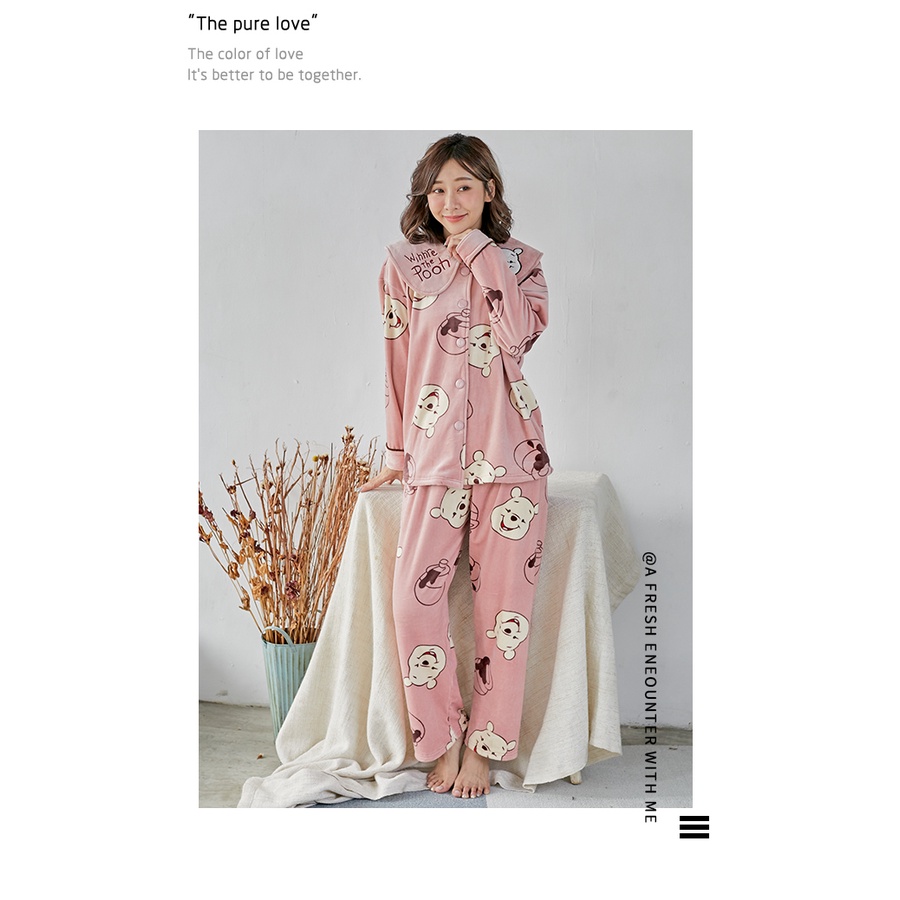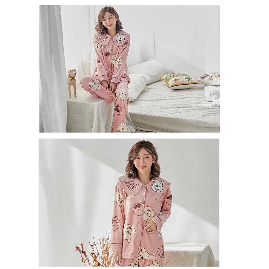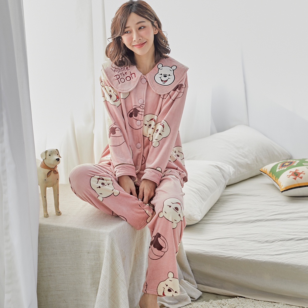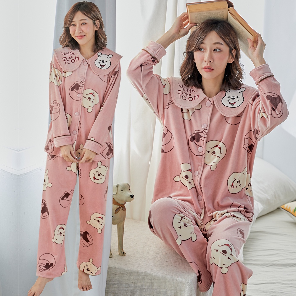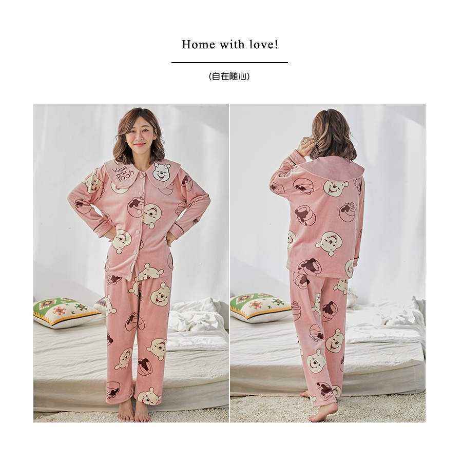 【Wonderland】蜂蜜小熊法蘭絨居家衣褲組(粉)
