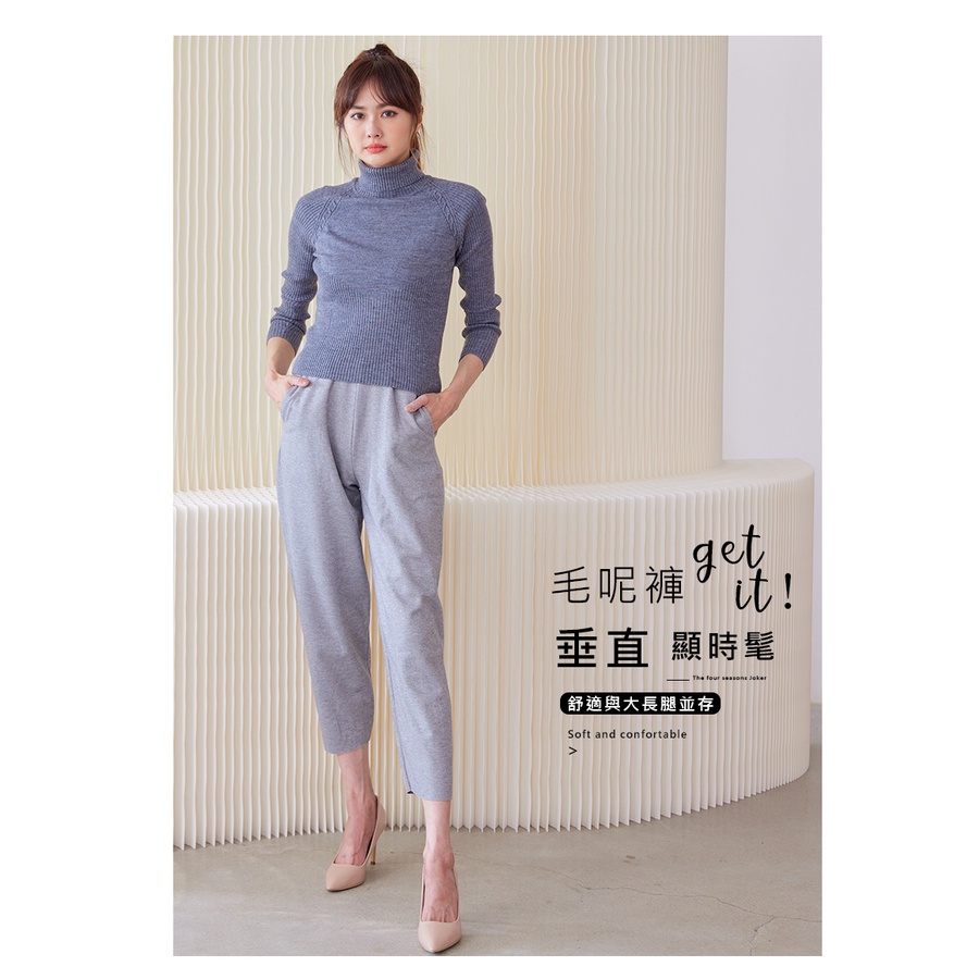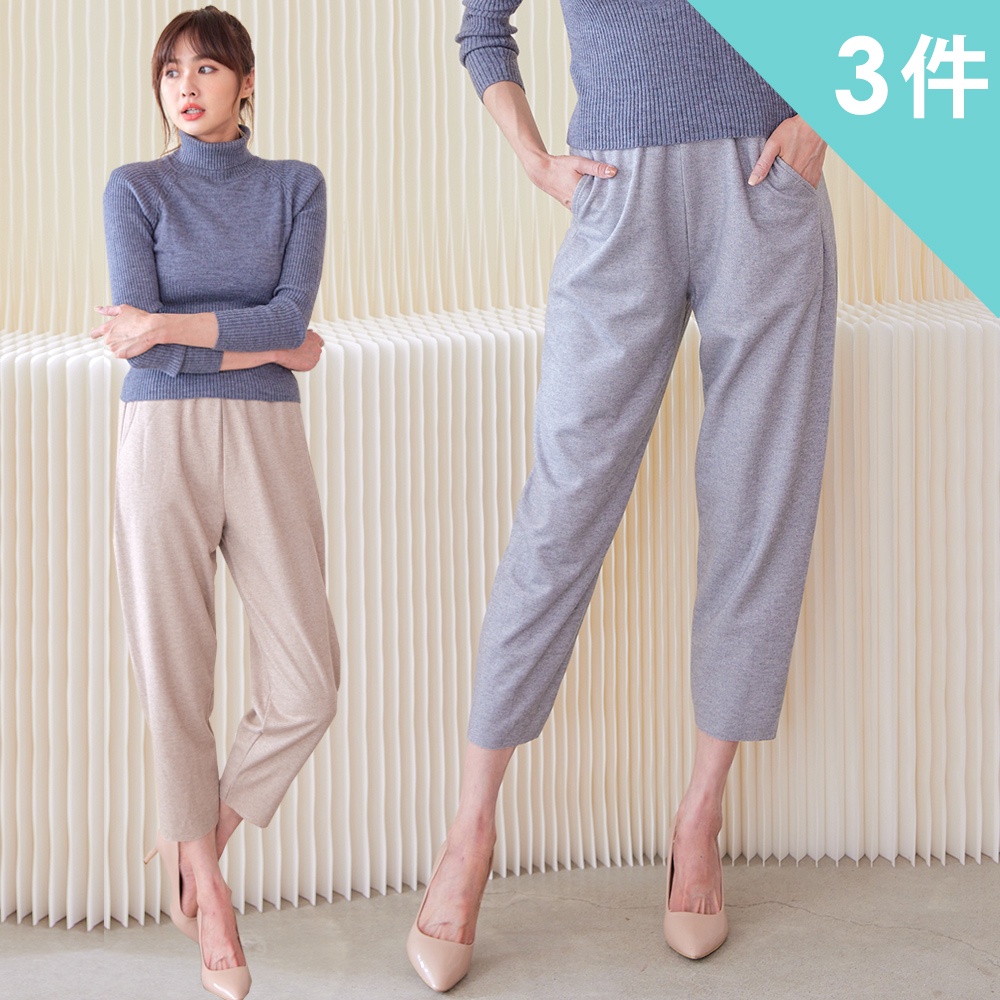 【Wonderland】優雅毛呢顯瘦輕鬆褲(3件組)