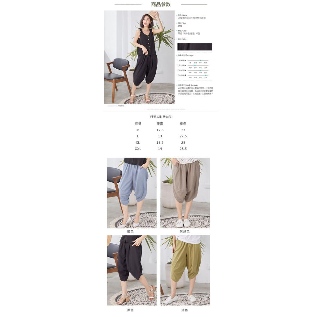 【Wonderland】涼瘦美輕鬆自在水洗棉空調褲(4件組)(XL)