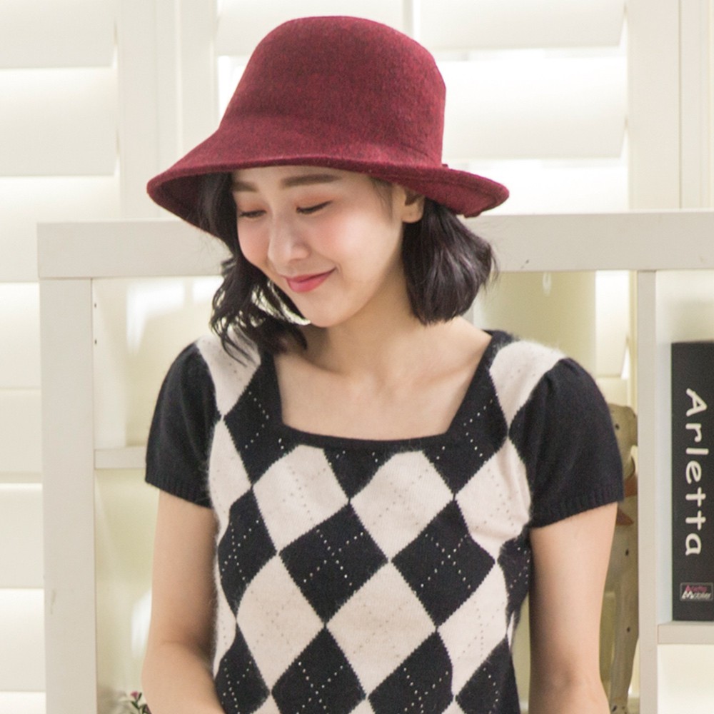 【Wonderland】時尚保暖蝴蝶結羊毛帽(酒紅)