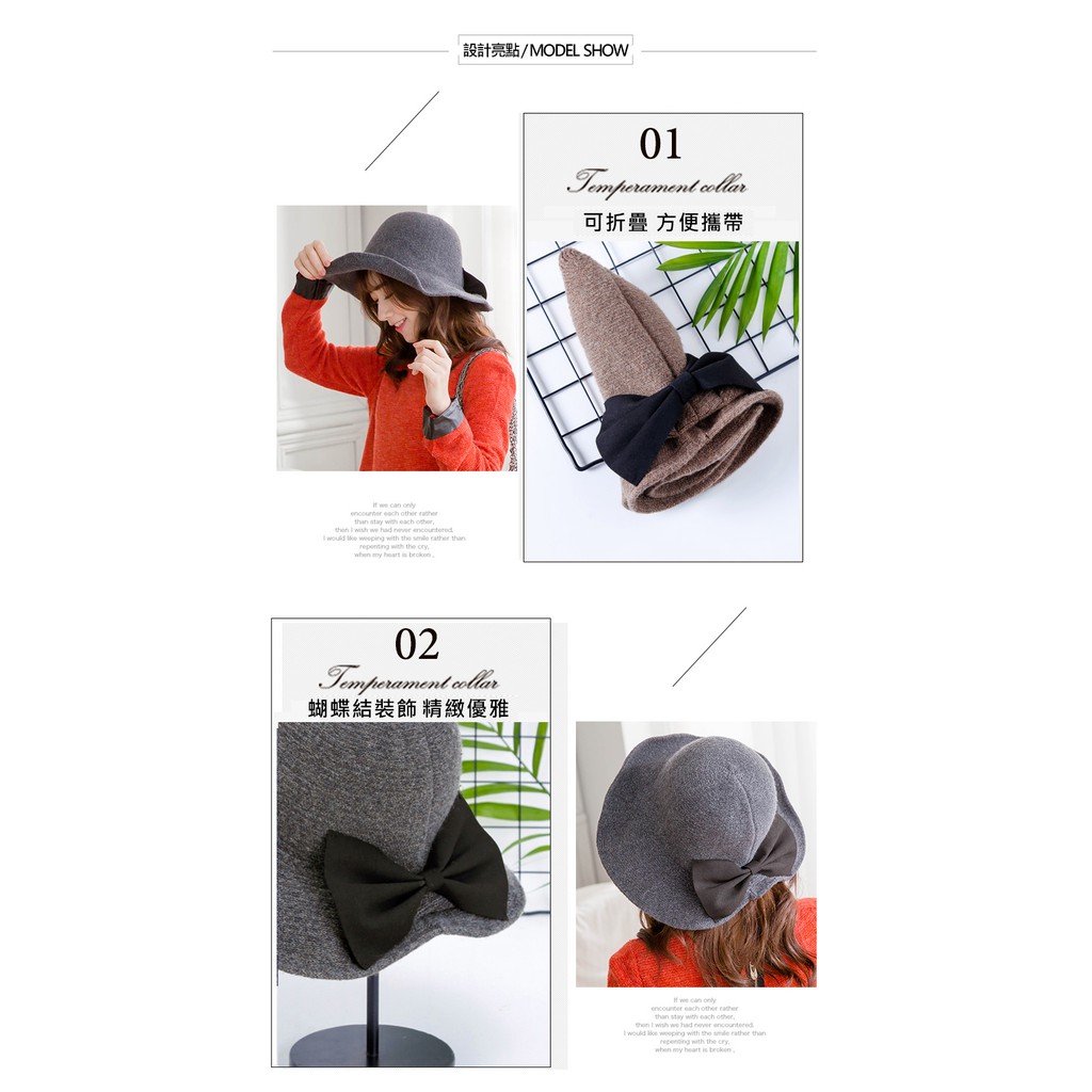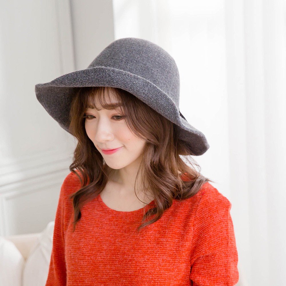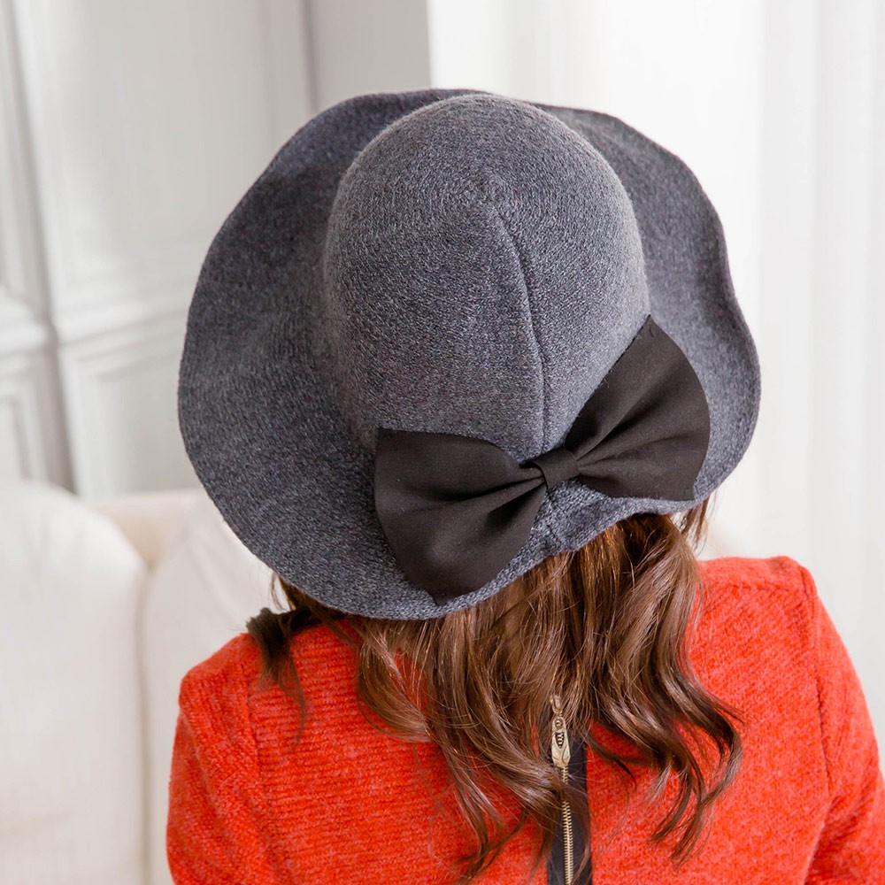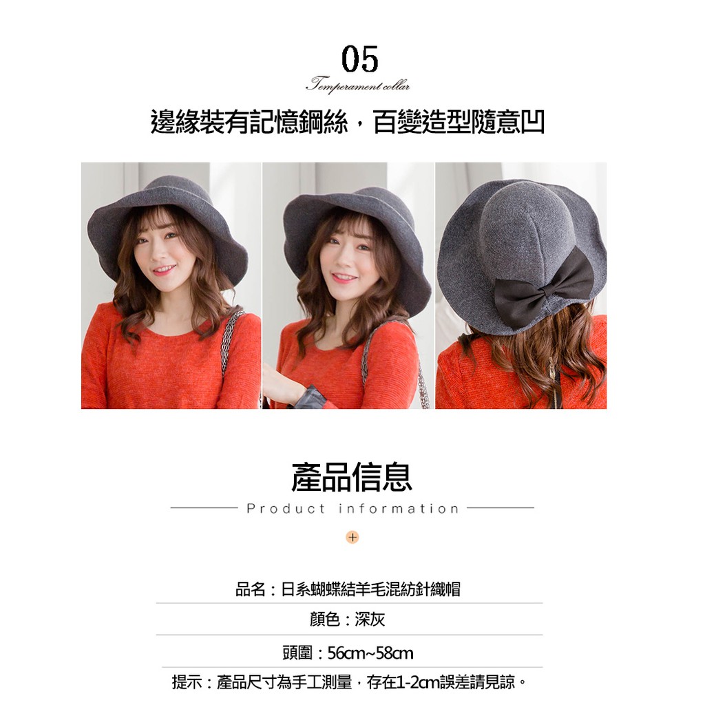 【Wonderland】日系蝴蝶結羊毛混紡針織帽(深灰)