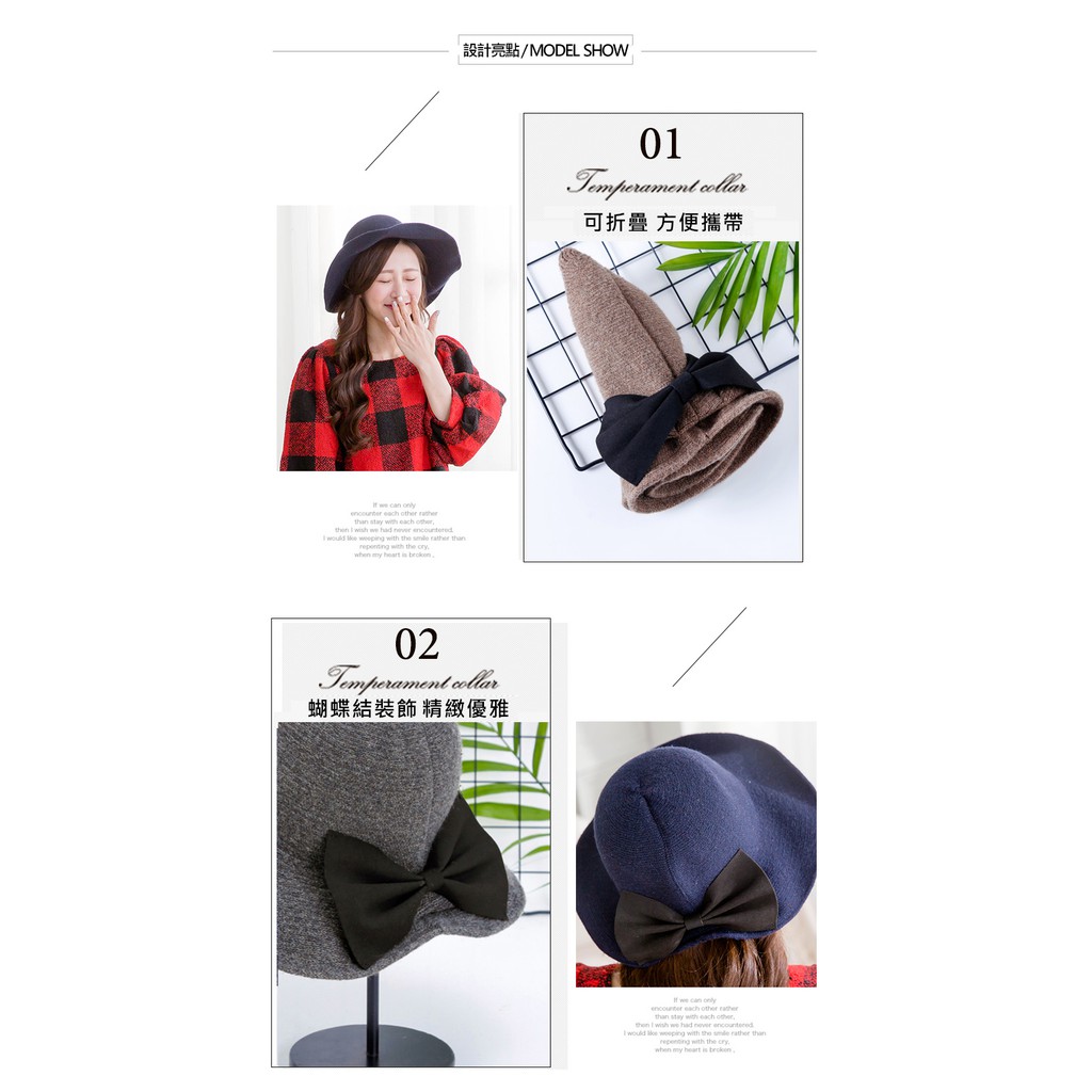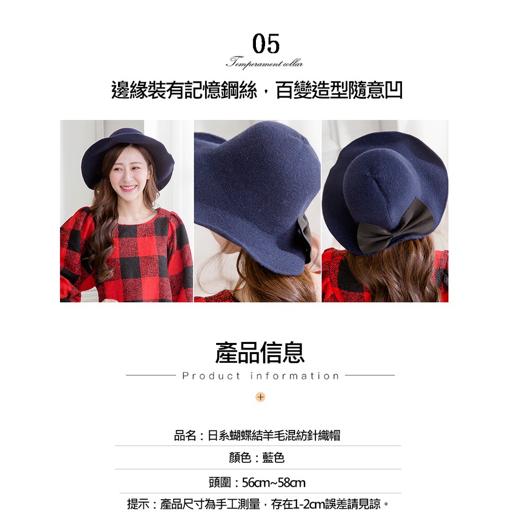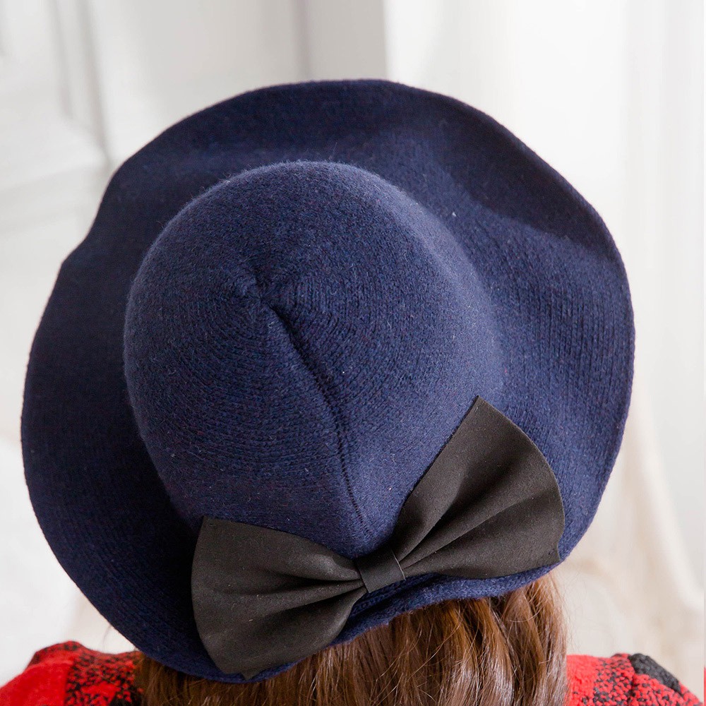 【Wonderland】日系蝴蝶結羊毛混紡針織帽(深藍)