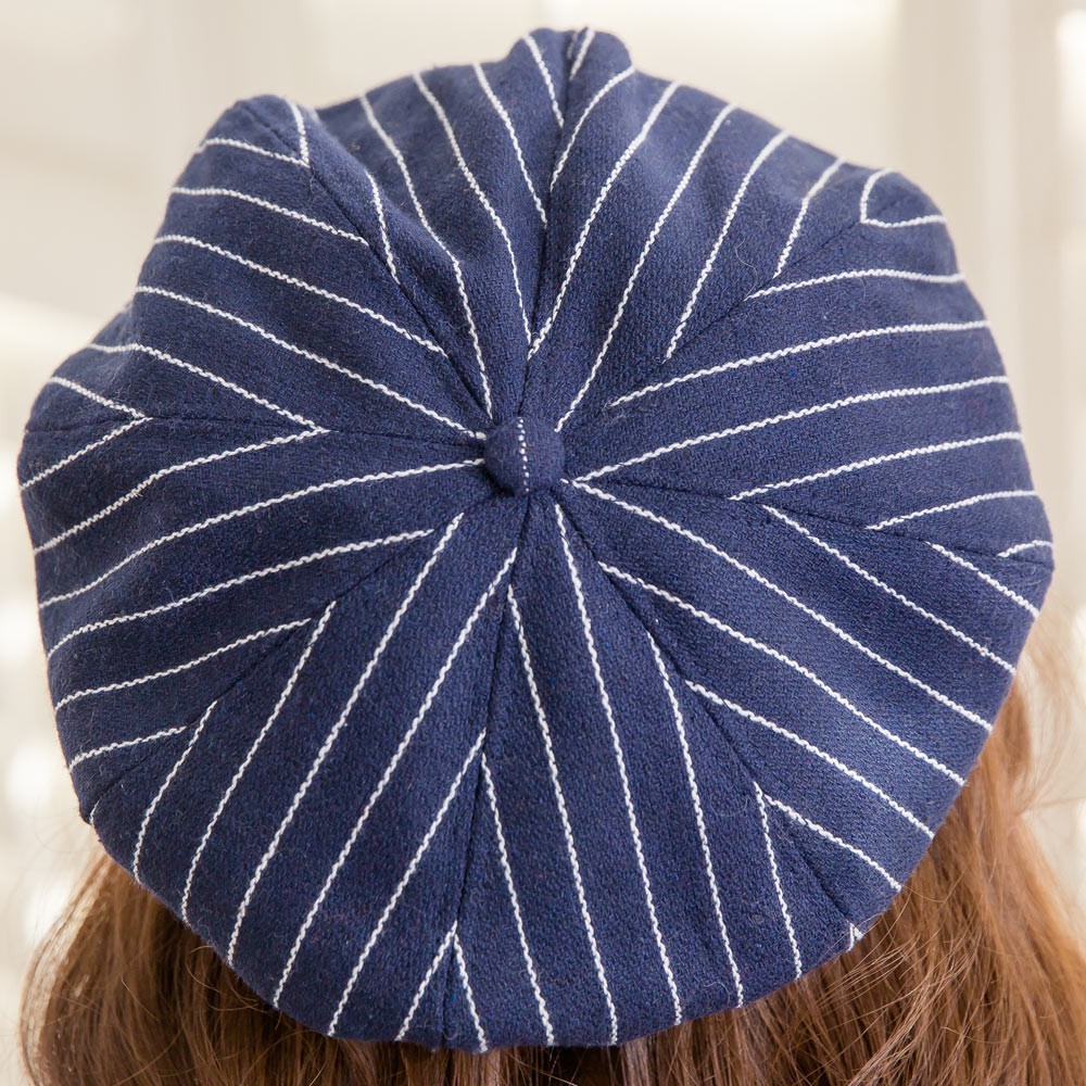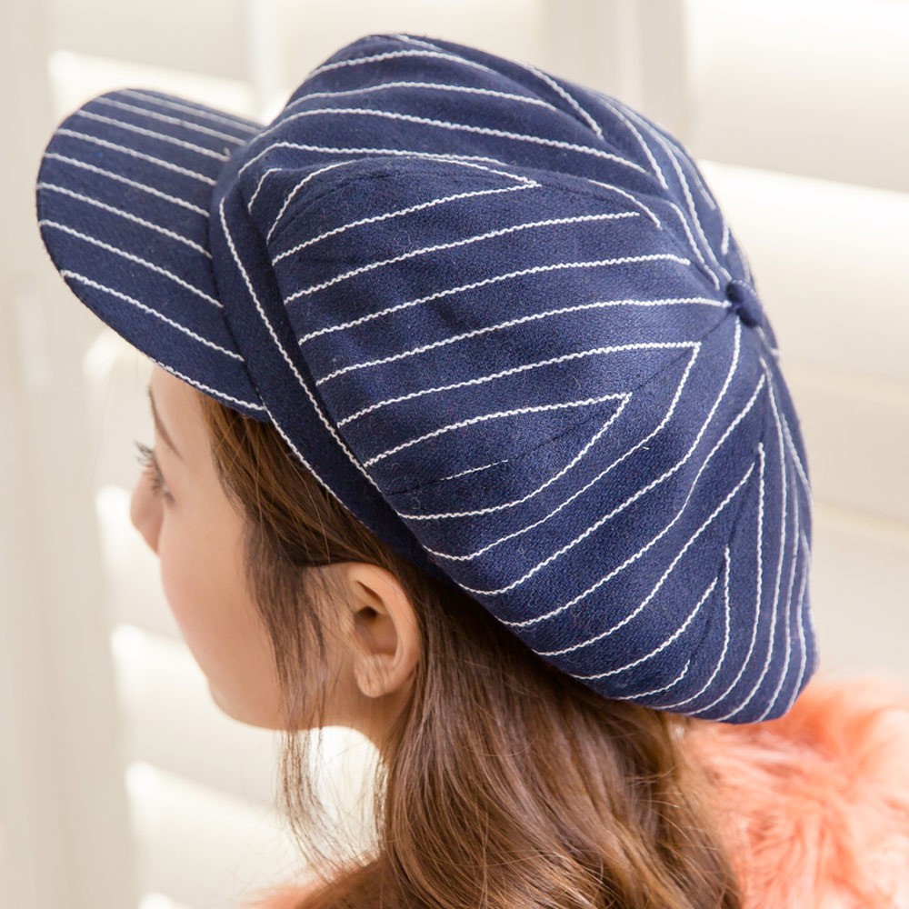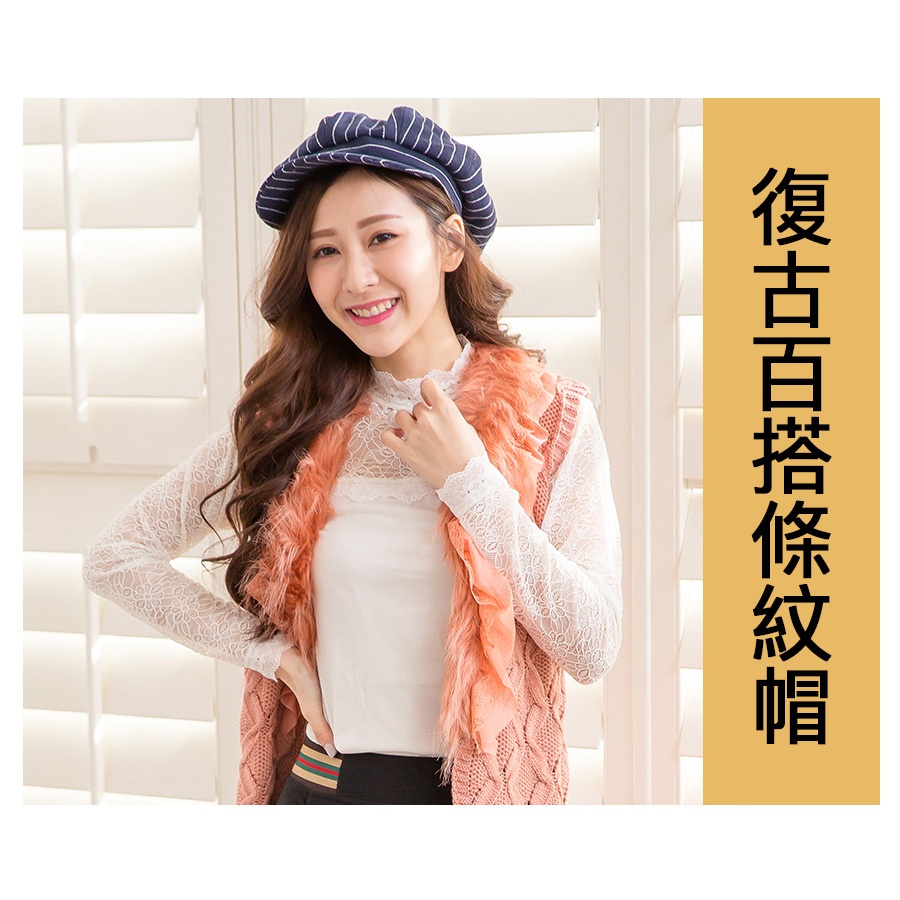【Wonderland】復古百搭條紋帽(藍)