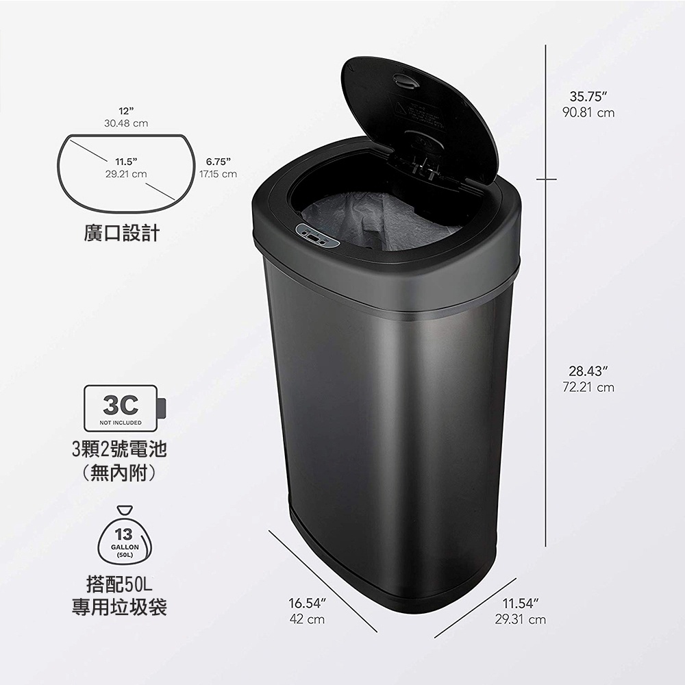 【絕版福利品出清】美國NINESTARS 時尚不銹鋼感應垃圾桶50L尊爵黑