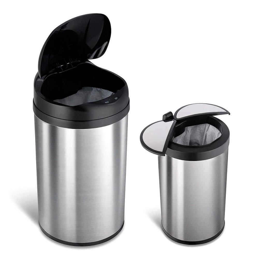 【福利品出清】美國NINESTARS時尚不銹鋼感應垃圾桶40L+12L(買大送小優惠組)無原廠外箱