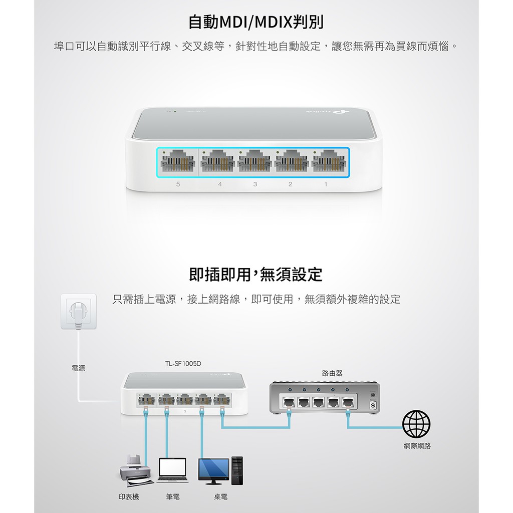 TP-Link 網路交換器 TL-SF1005D 5埠 10/100Mbps桌上型交換器