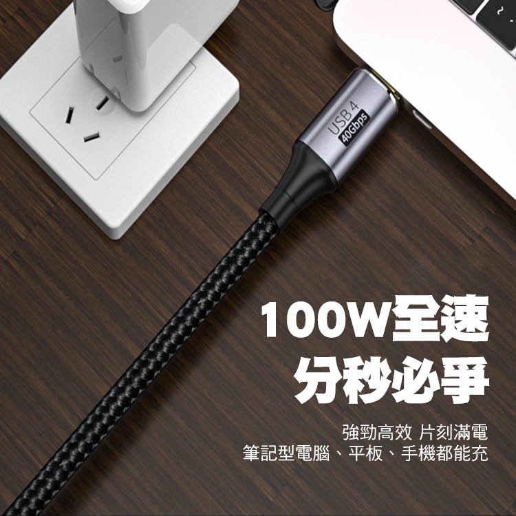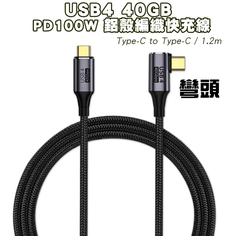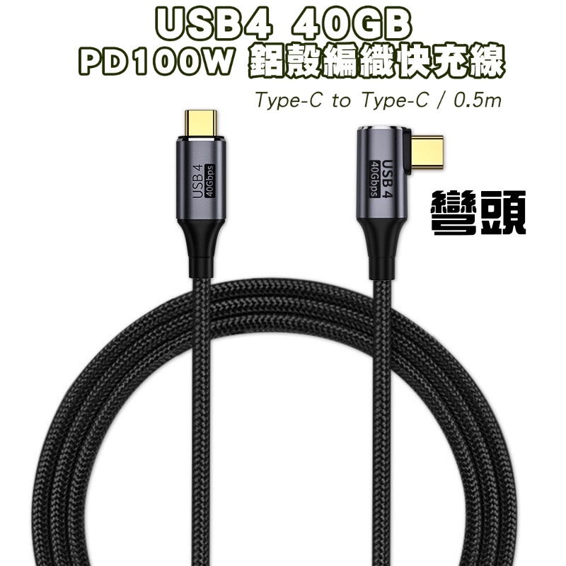 SHOWHAN USB4 40GBbps Type-C to Type-C 100W 直頭 彎頭 鋁殼編織 PD快充線