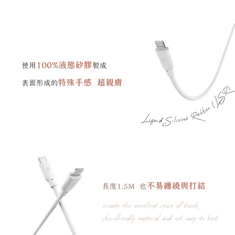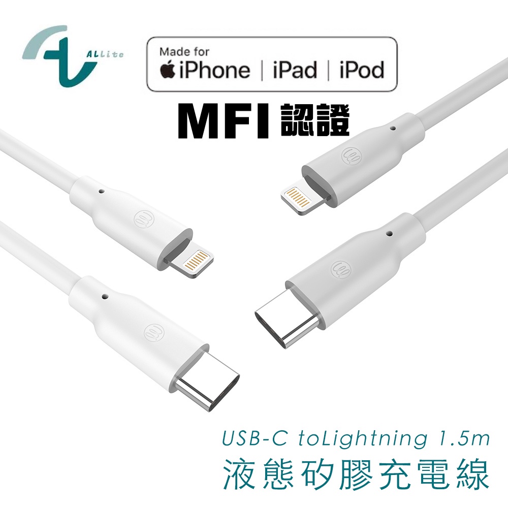 Allite 液態矽膠充電線 USB-C to Lightning 1.5M MFi認證 30W 適用 iPhone